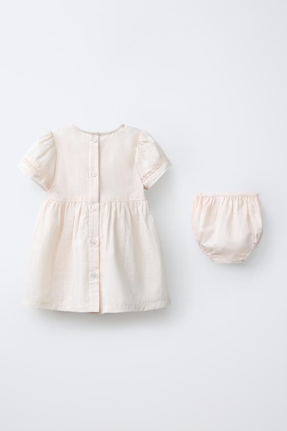ZARA ПЛАТЬЕ И ТРУСИКИ С ВЫШИВКОЙ, ЦВЕТ РОЗОВОГО ДЕРЕВА