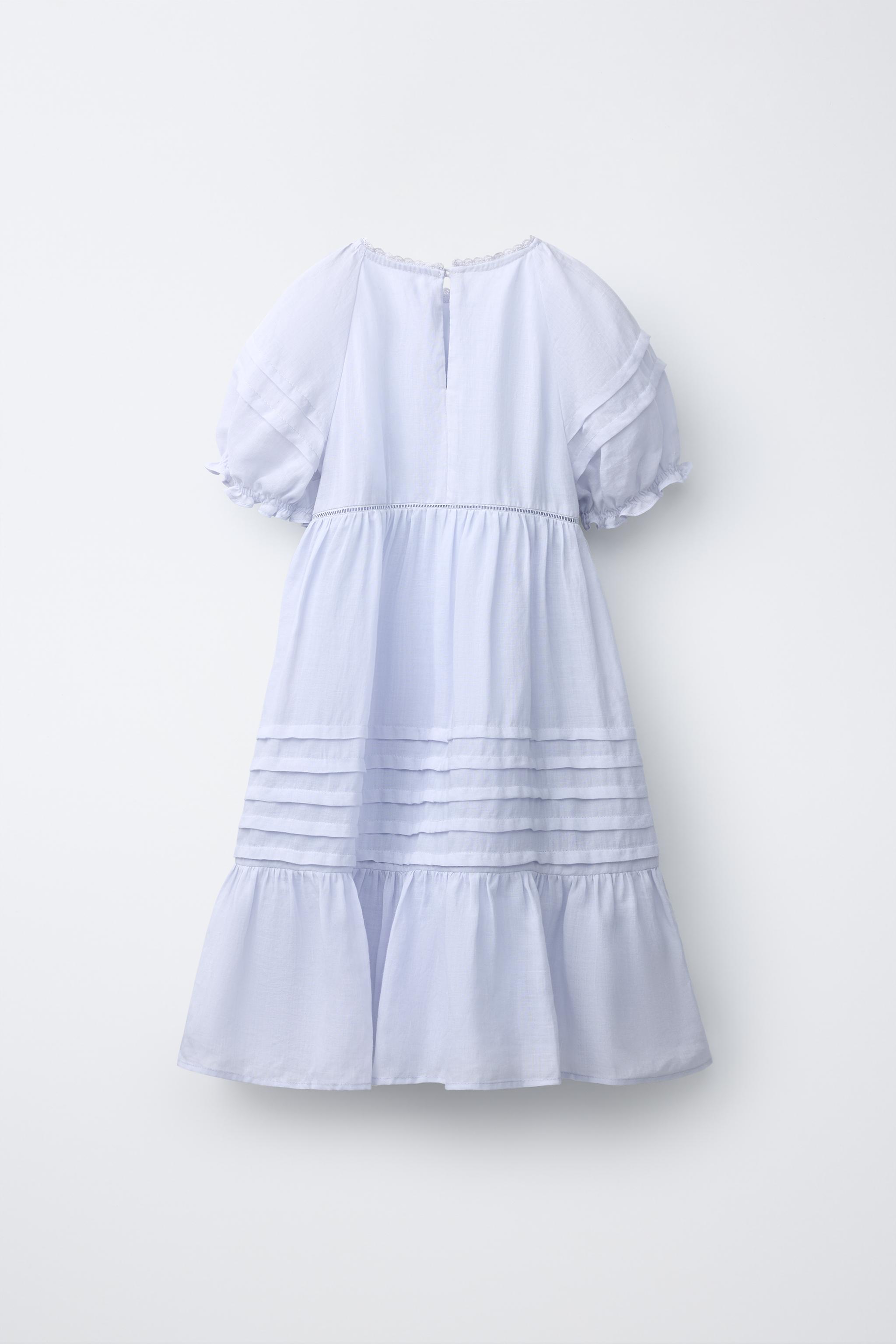 ZARA ПЛАТЬЕ ИЗ 100% РАМИ С СБОРКАМИ И КРУЖЕВОМ, НЕОНОВЫЙ СИНИЙ