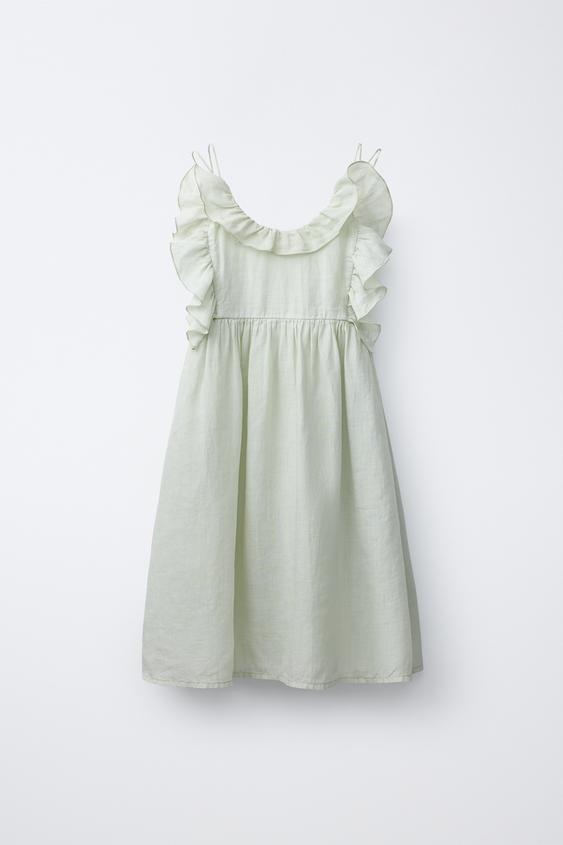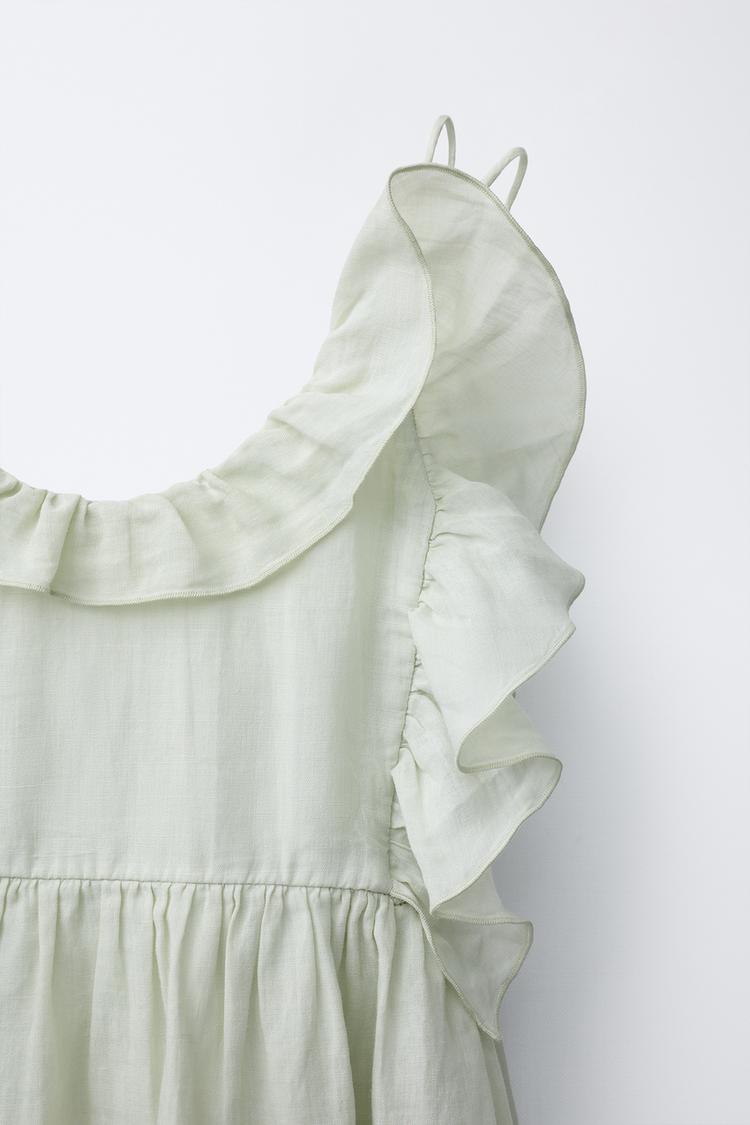 ZARA ПЛАТЬЕ ИЗ 100% РАМИ С ВОЛАНАМИ, ПАСТЕЛЬНО-ЗЕЛЕНЫЙ