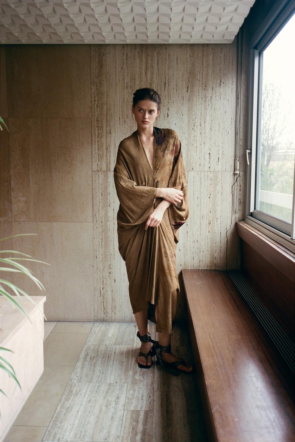 ZARA ПЛАТЬЕ ИЗ 100% ВИСКОЗЫ С ПРИНТОМ, РАЗНОЦВЕТНЫЙ