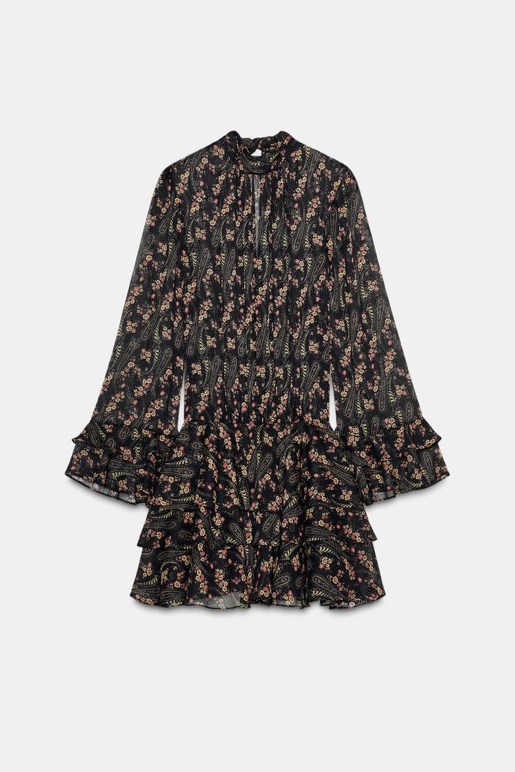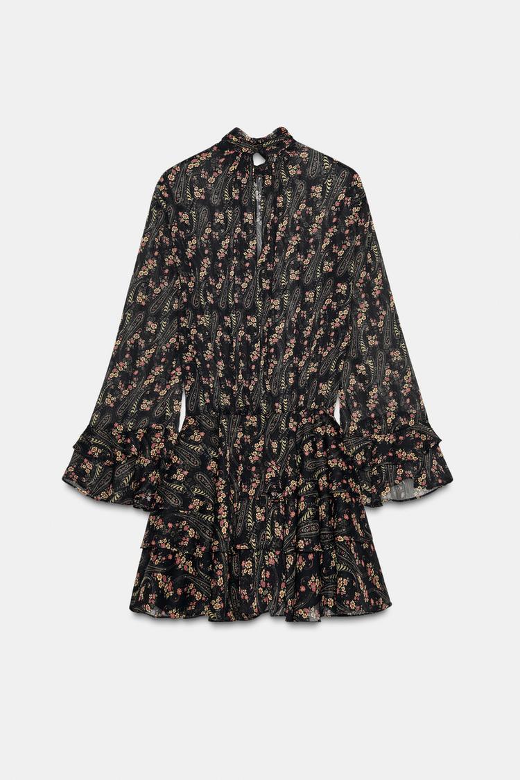 ZARA ПЛАТЬЕ ИЗ БАМБУКА С ЦВЕТОЧНЫМ ПРИНТОМ, ЧЕРНЫЙ/ЗОЛОТОЙ
