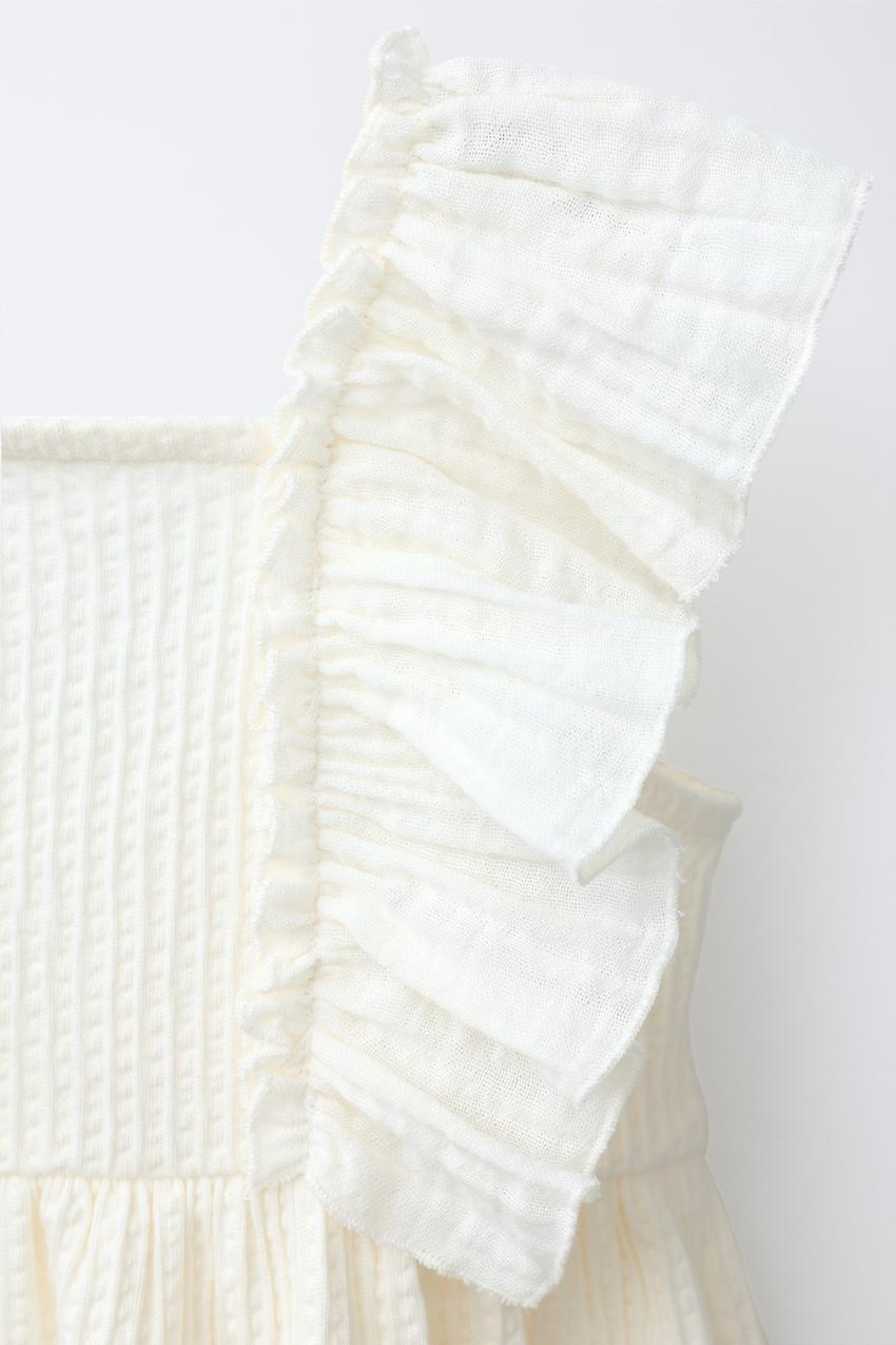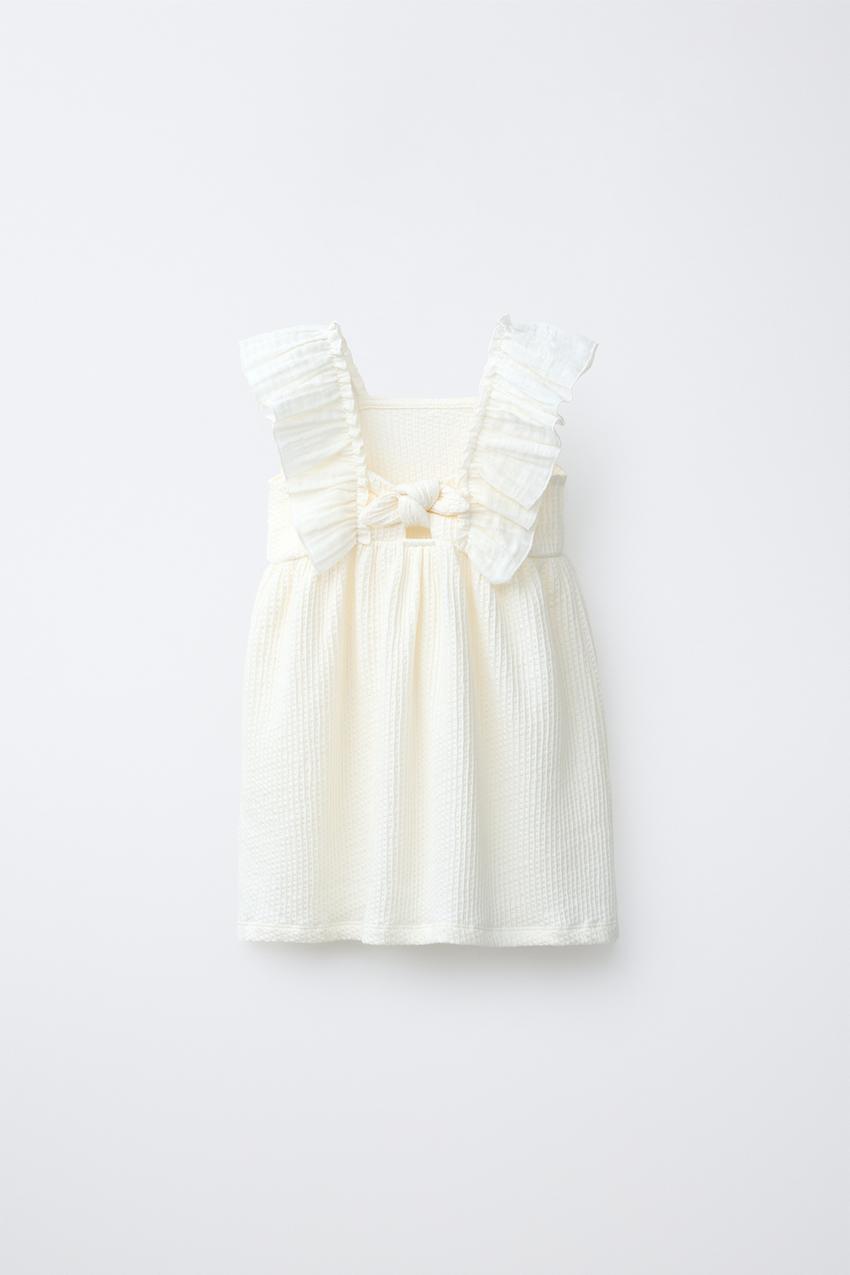 ZARA ПЛАТЬЕ ИЗ КОМБИНИРОВАННОЙ ТКАНИ, ЭКРЮ