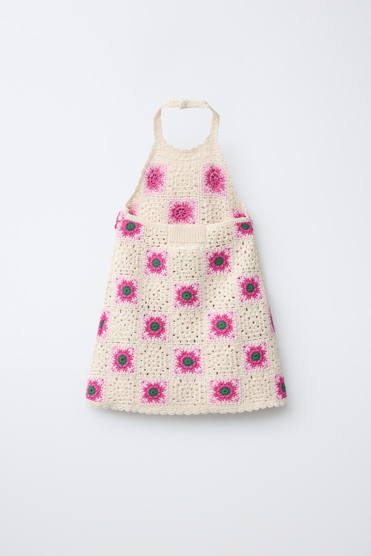 ZARA ПЛАТЬЕ ИЗ КРУЖЕВА КРОШЕ С ЦВЕТОЧНЫМ ПРИНТОМ, ЦВЕТ ФУКСИИ