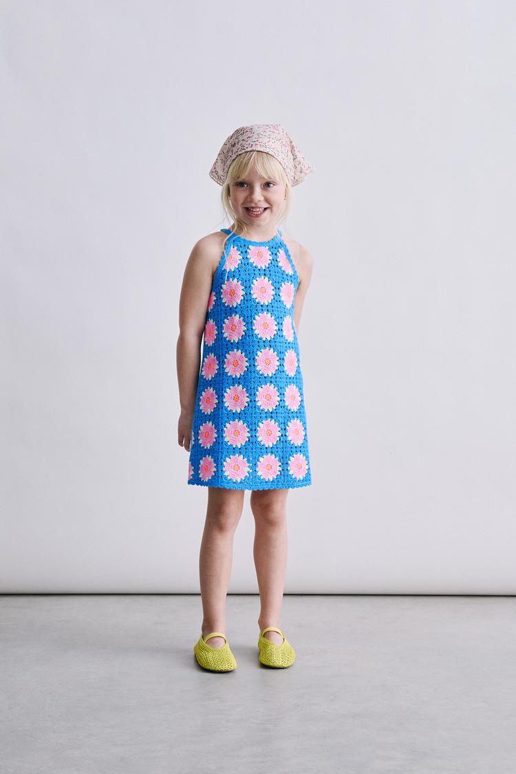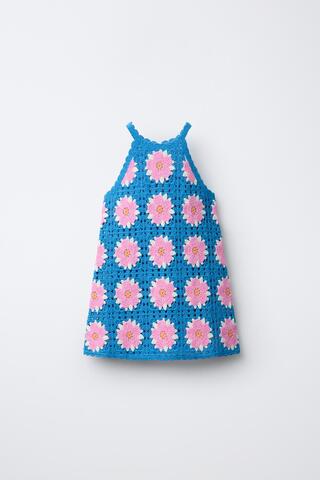 ZARA ПЛАТЬЕ ИЗ КРУЖЕВА КРОШЕ, СИНИЙ ЭЛЕКТРИК