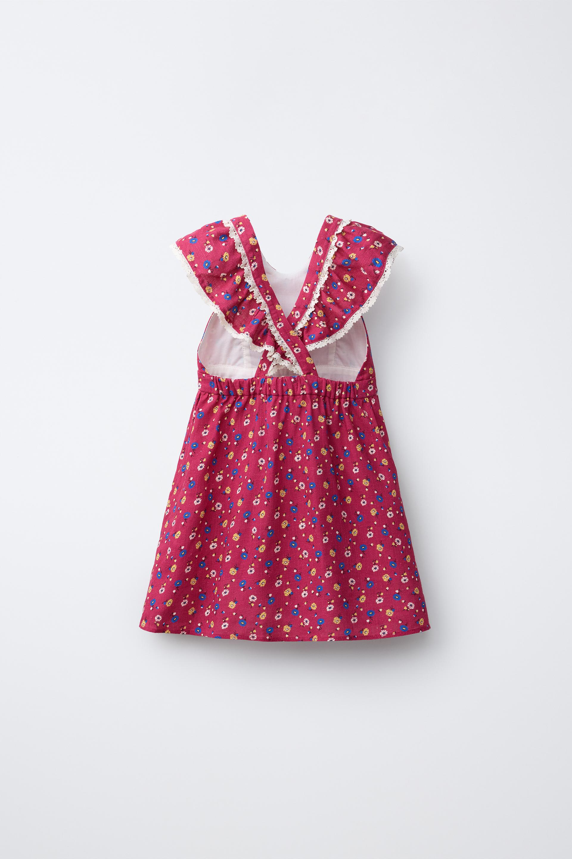 ZARA ПЛАТЬЕ ИЗ ЛЬНА С ЦВЕТОЧНЫМ ПРИНТОМ, ЦВЕТ ФУКСИИ