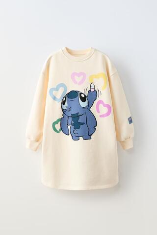 ZARA ПЛАТЬЕ ИЗ МЯГКОЙ ТКАНИ С ПРИНТОМ «ЛИЛО И ШОВ» ©, ЭКРЮ