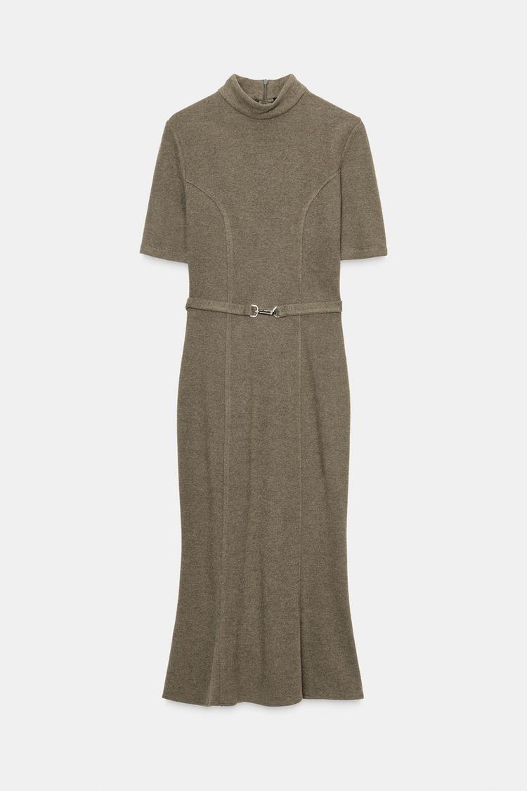 ZARA ПЛАТЬЕ ИЗ МЯГКОЙ ТКАНИ С РЕМНЕМ, ХАКИ МЕЛАНЖ