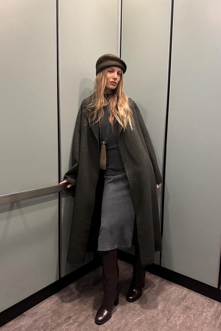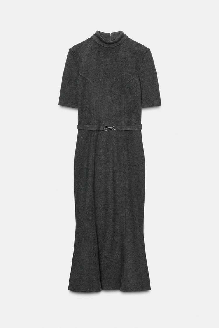 ZARA ПЛАТЬЕ ИЗ МЯГКОЙ ТКАНИ С РЕМНЕМ, СЕРЫЙ МЕЛАНЖ