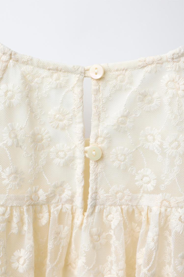ZARA ПЛАТЬЕ ИЗ ПОЛУПРОЗРАЧНОЙ ТКАНИ, ЭКРЮ