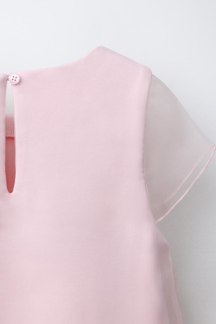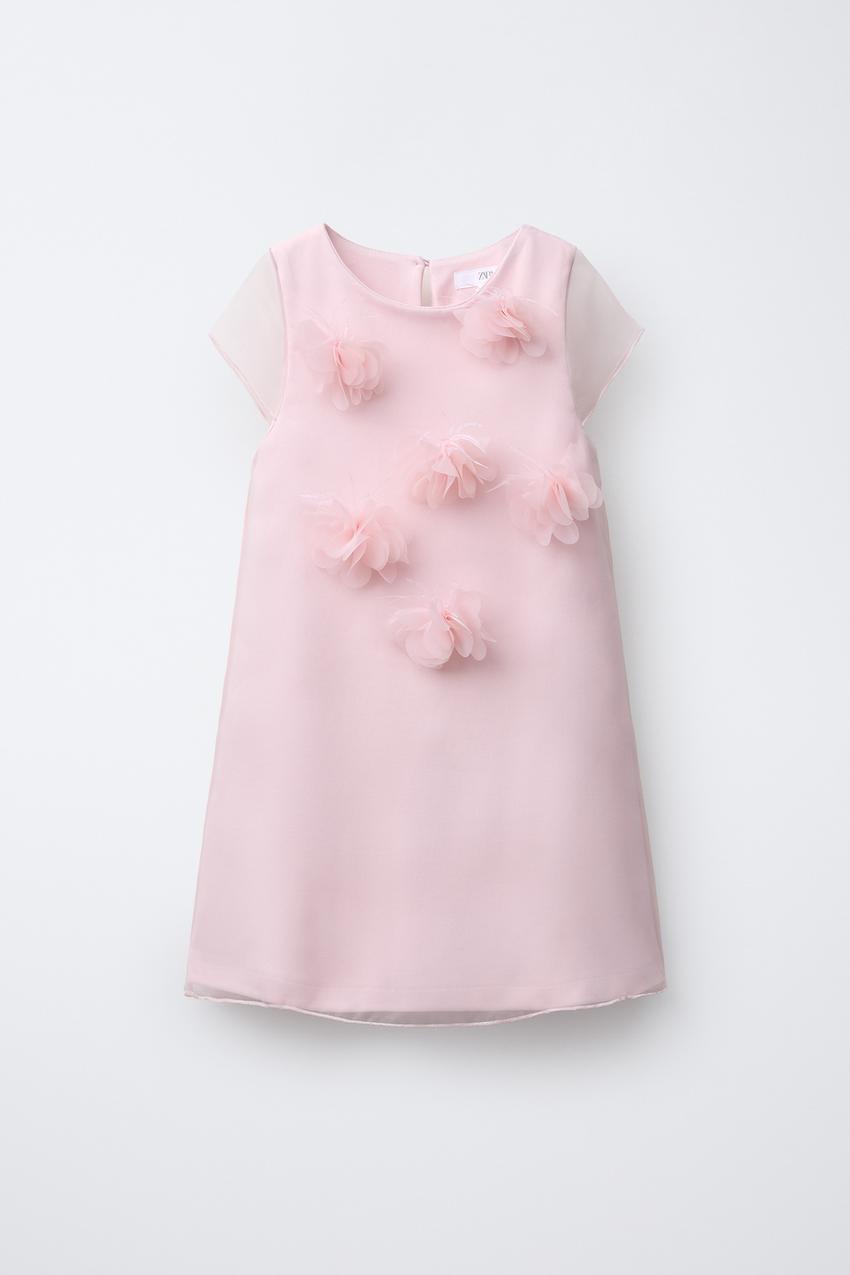 ZARA ПЛАТЬЕ ИЗ ПОЛУПРОЗРАЧНОЙ ТКАНИ С ЦВЕТМИ ИЗ ОРГАНЗЫ, РОЗОВЫЙ