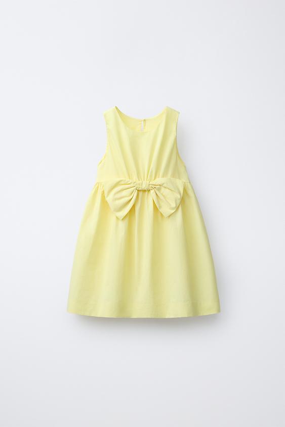 ZARA ПЛАТЬЕ ИЗ ПОПЛИНА С БАНТОМ, ЖЕЛТЫЙ