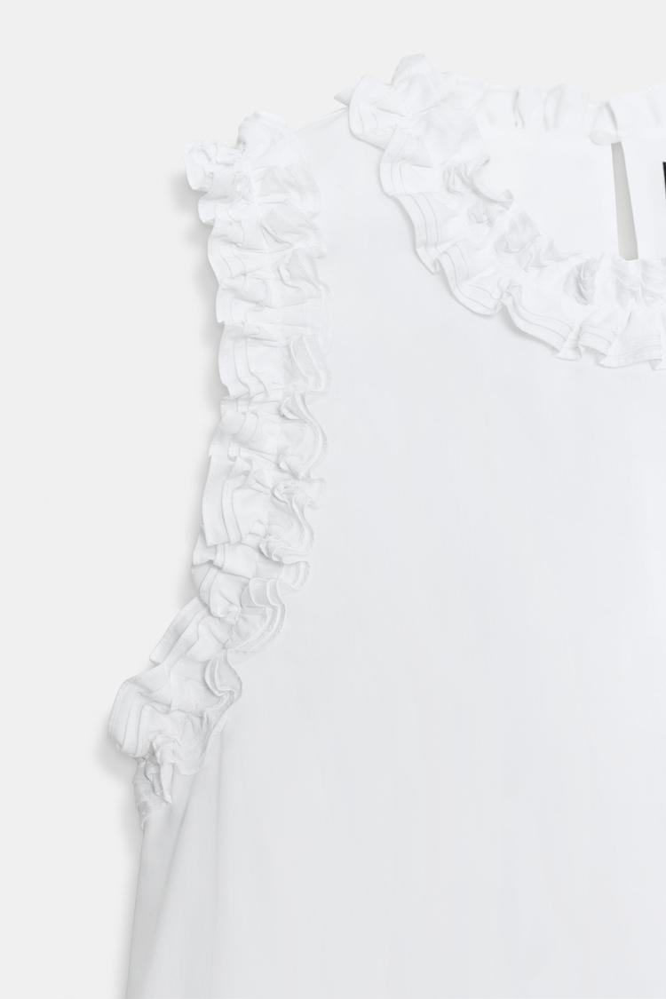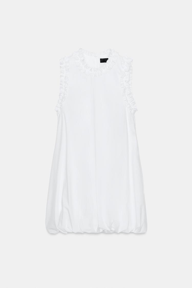 ZARA ПЛАТЬЕ ИЗ ПОПЛИНА С ВОЛАНАМИ, БЕЛЫЙ