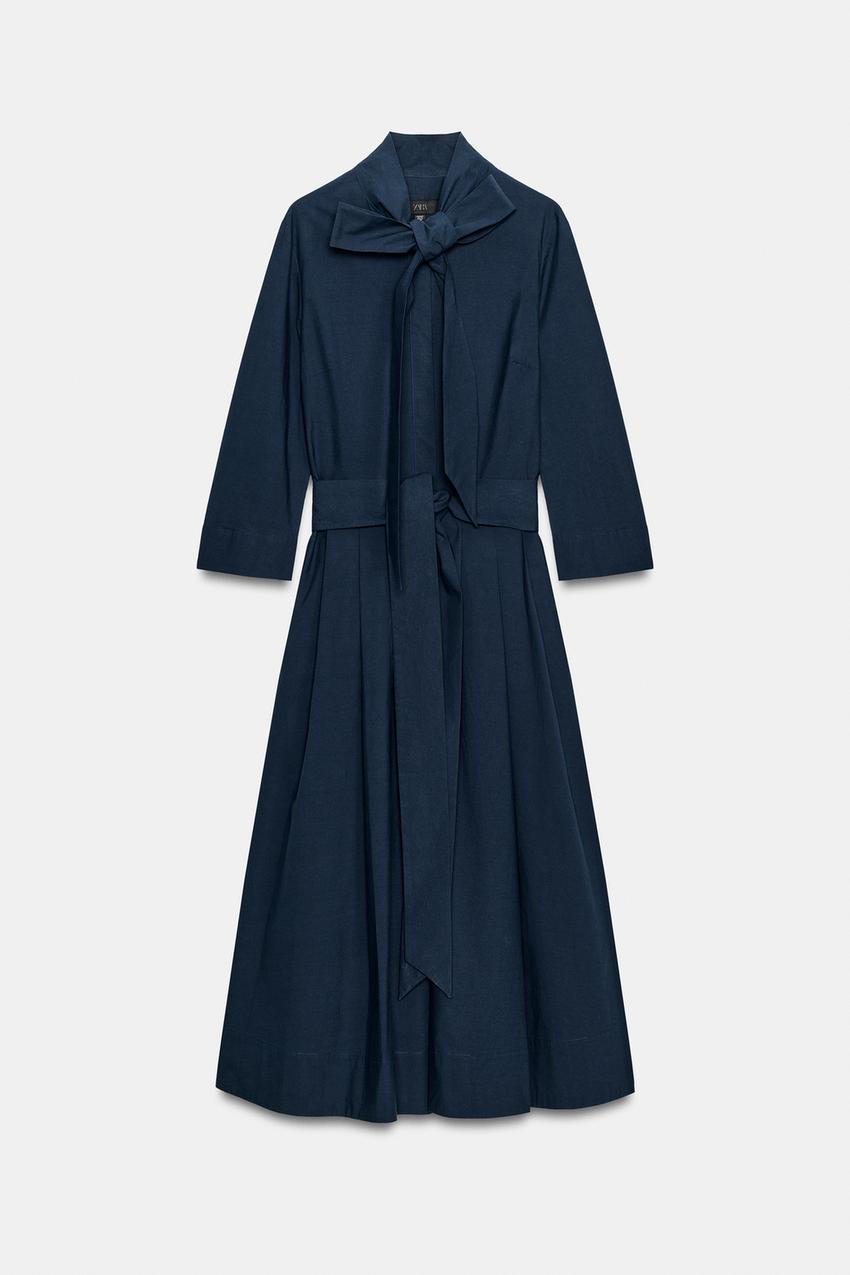 ZARA ПЛАТЬЕ ИЗ ПОПЛИНА С ЗАВЯЗКАМИ — ZW COLLECTION, МОРСКОЙ СИНИЙ
