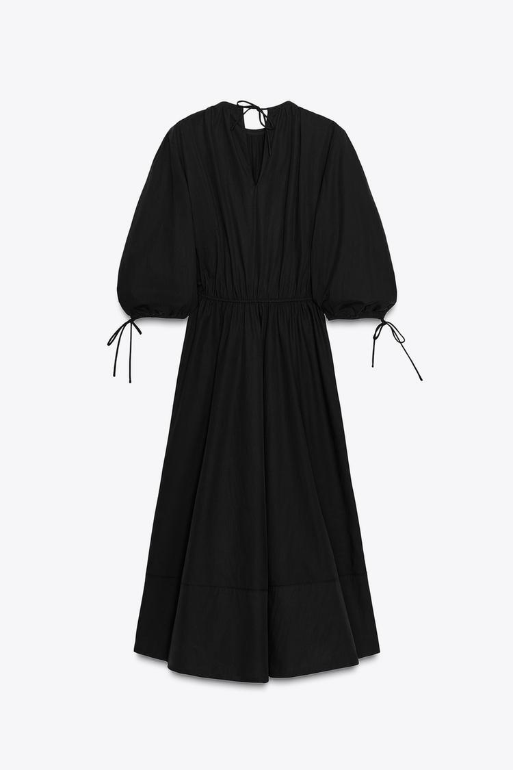 ZARA ПЛАТЬЕ ИЗ ПОПЛИНА СО СБОРКАМИ — ZW COLLECTION, ЧЕРНЫЙ
