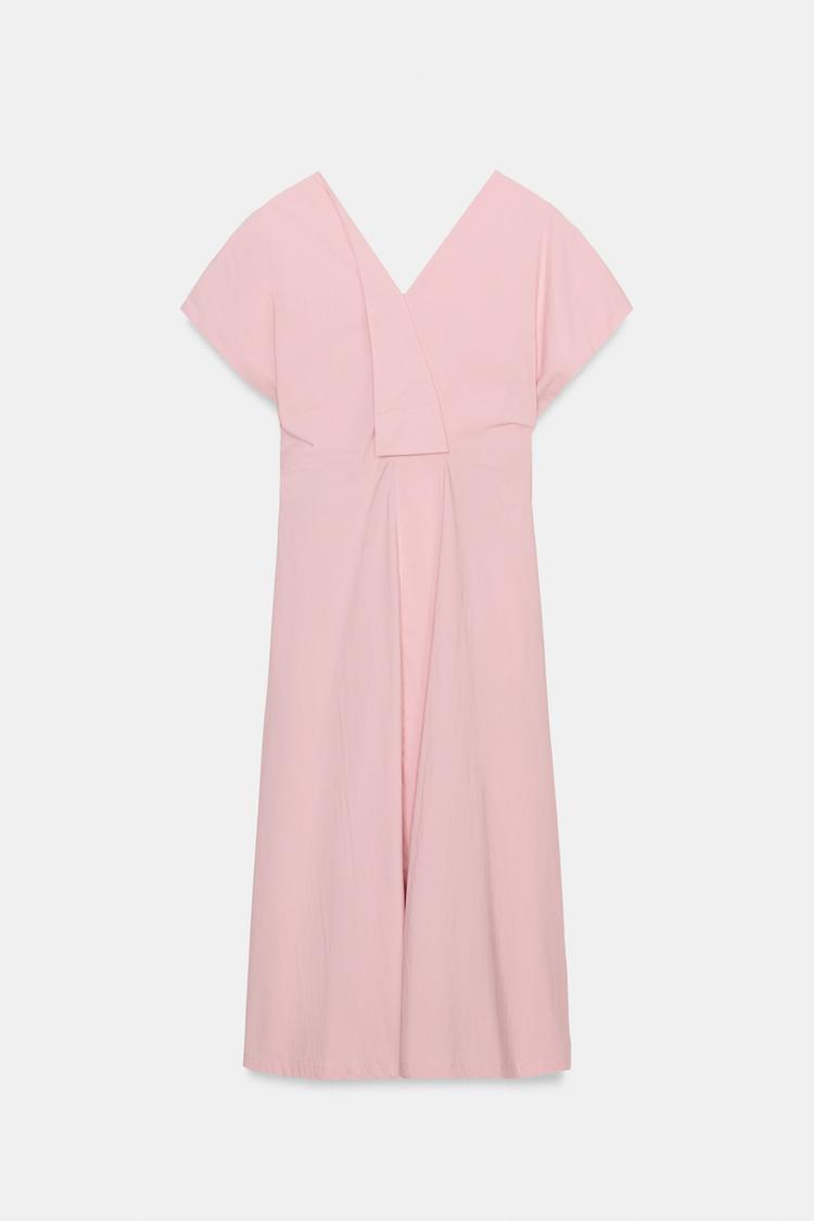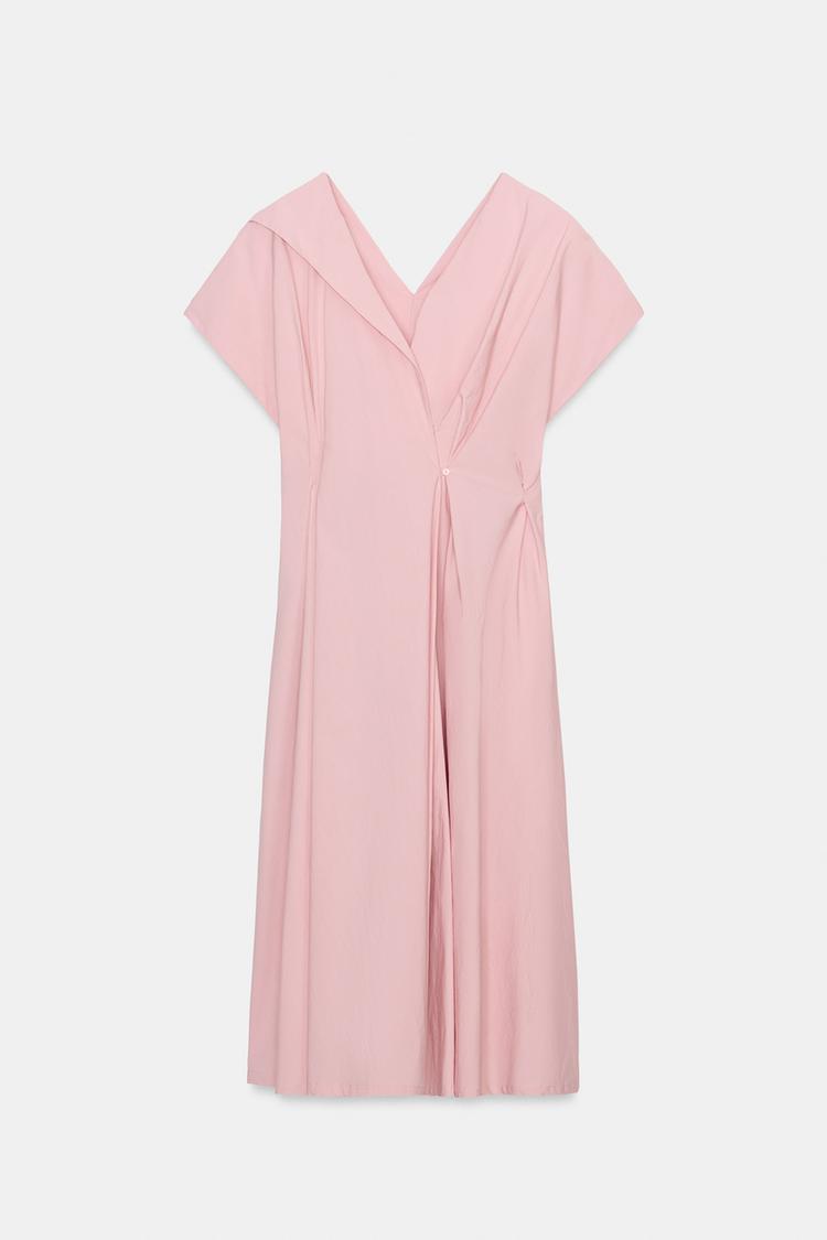 ZARA ПЛАТЬЕ ИЗ ПОПЛИНА СО СКЛАДКАМИ — ZW COLLECTION, РОЗОВЫЙ