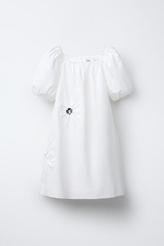 ZARA ПЛАТЬЕ ИЗ ПОПЛИНА В ЦВЕТОЧЕК, БЕЛЫЙ