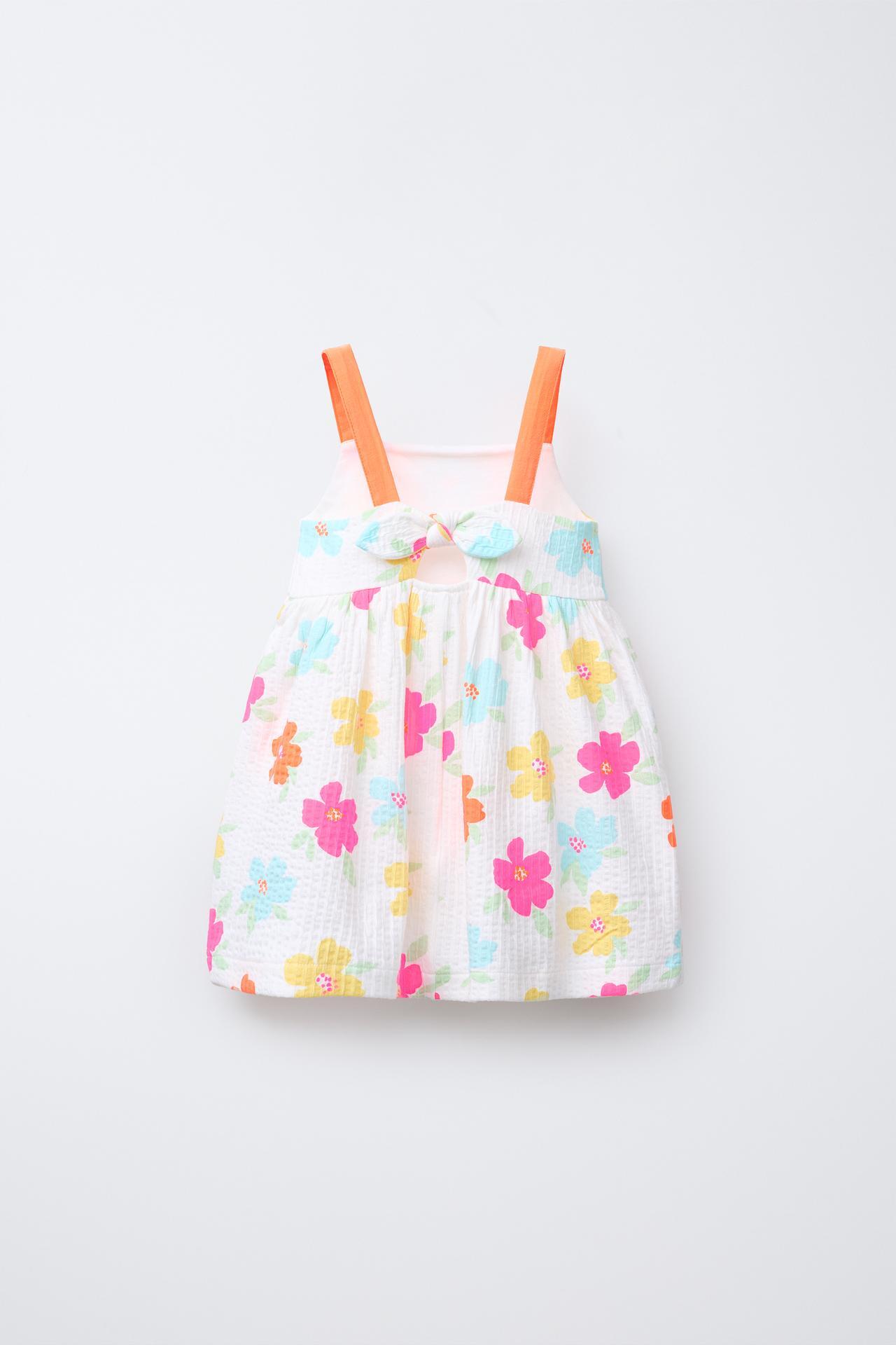 ZARA ПЛАТЬЕ ИЗ РЕЛЬЕФНОЙ ТКАНИ С ПРИНТОМ И БАНТОМ, ОРАНЖЕВЫЙ