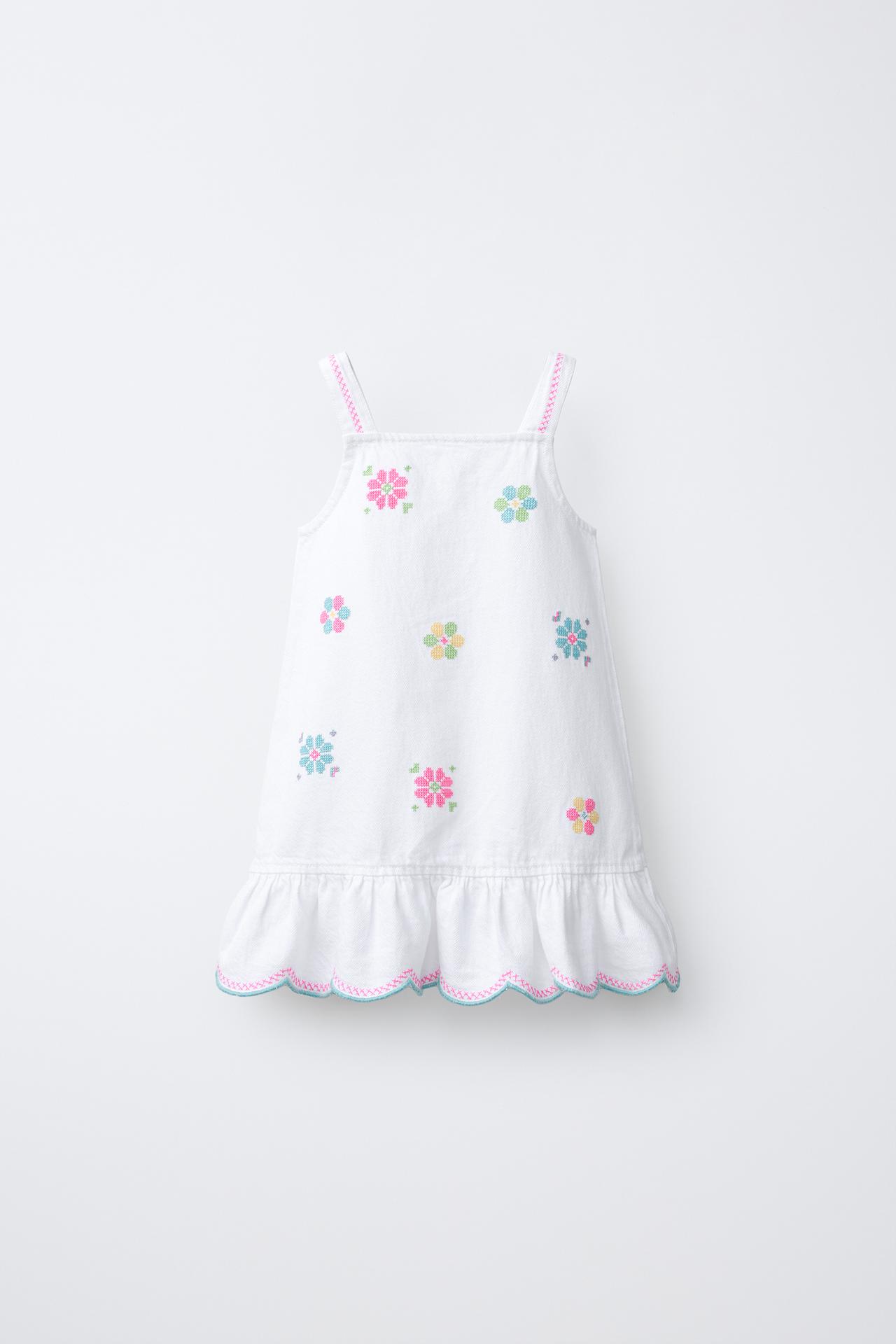 ZARA ПЛАТЬЕ ИЗ САРЖИ С ВЫШИВКОЙ КРЕСТИКОМ, БЕЛЫЙ