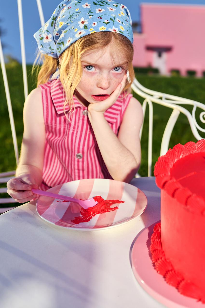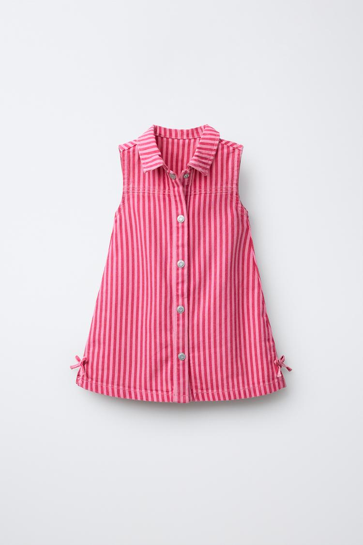 ZARA ПЛАТЬЕ ИЗ САРЖИ В ПОЛОСКУ, РОЗОВЫЙ