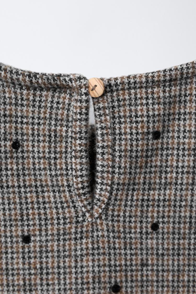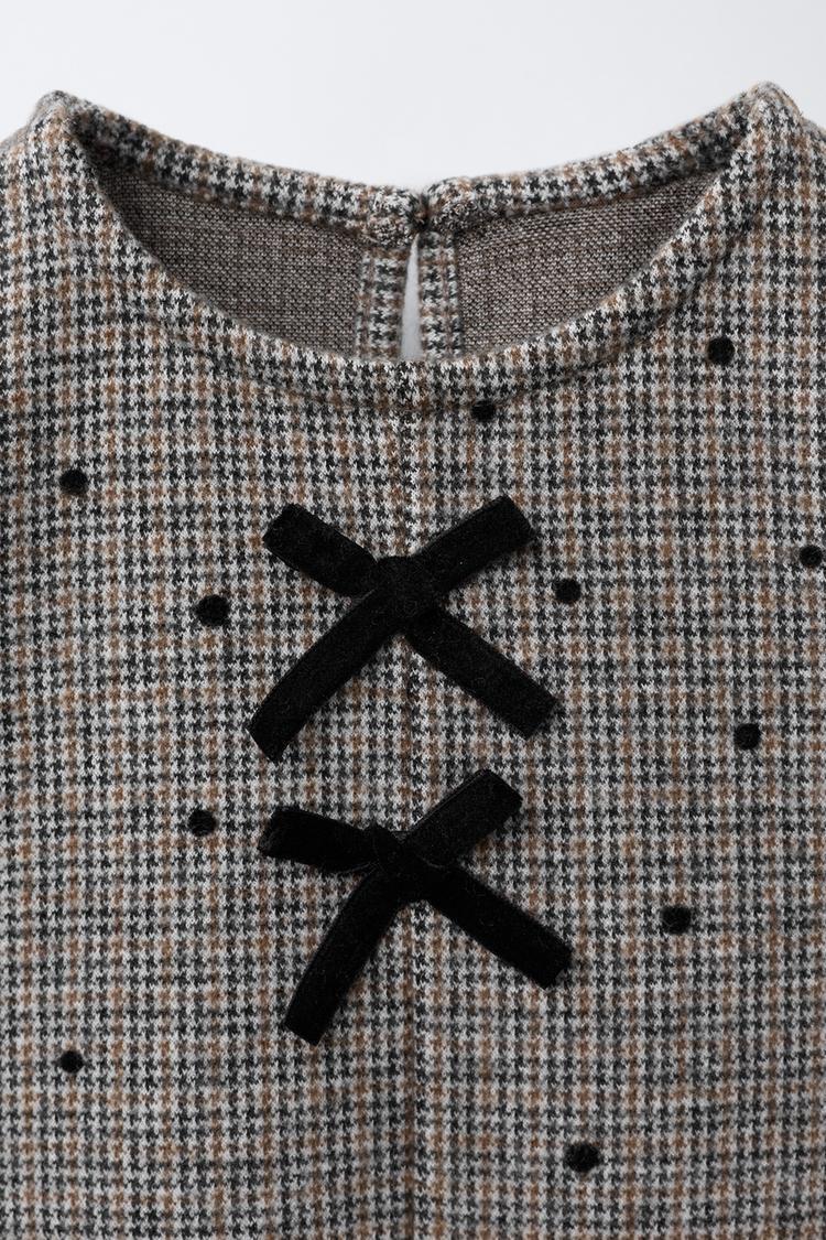 ZARA ПЛАТЬЕ ИЗ ТКАНИ «ГУСИНАЯ ЛАПКА» С БАРХАТНЫМИ БАНТАМИ, РЫЖЕВАТО-КОРИЧНЕВЫЙ
