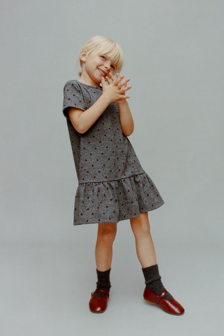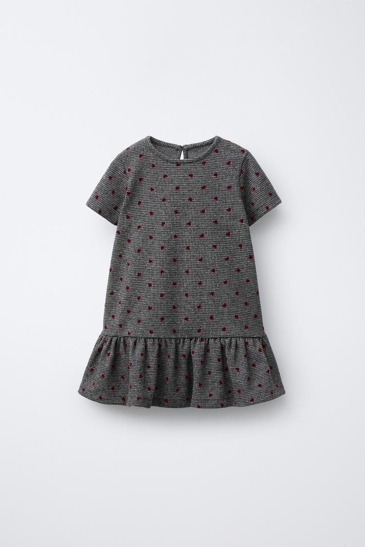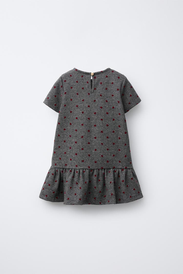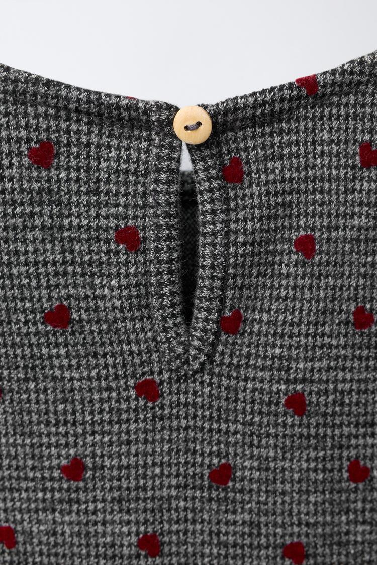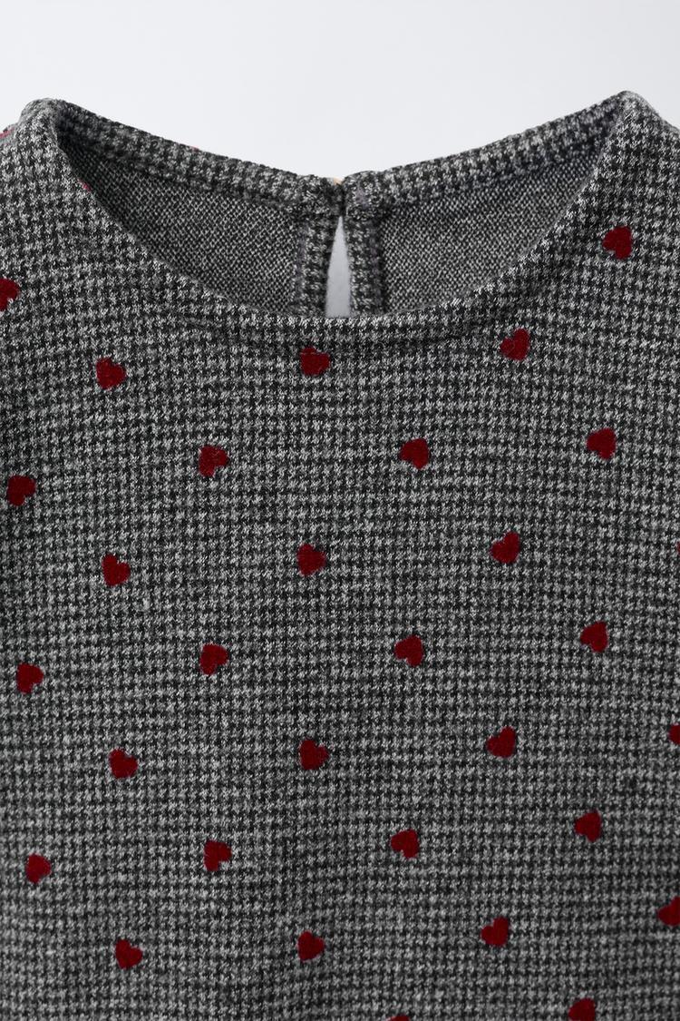 ZARA ПЛАТЬЕ ИЗ ТКАНИ «ГУСИНАЯ ЛАПКА» С РЕЛЬЕФНЫМИ СЕРДЕЧКАМИ, СЕРЫЙ