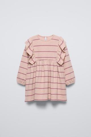 ZARA ПЛАТЬЕ ИЗ ТКАНИ SOFT TOUCH С ВОЛАНАМИ, ЦВЕТ РОЗОВОГО ДЕРЕВА