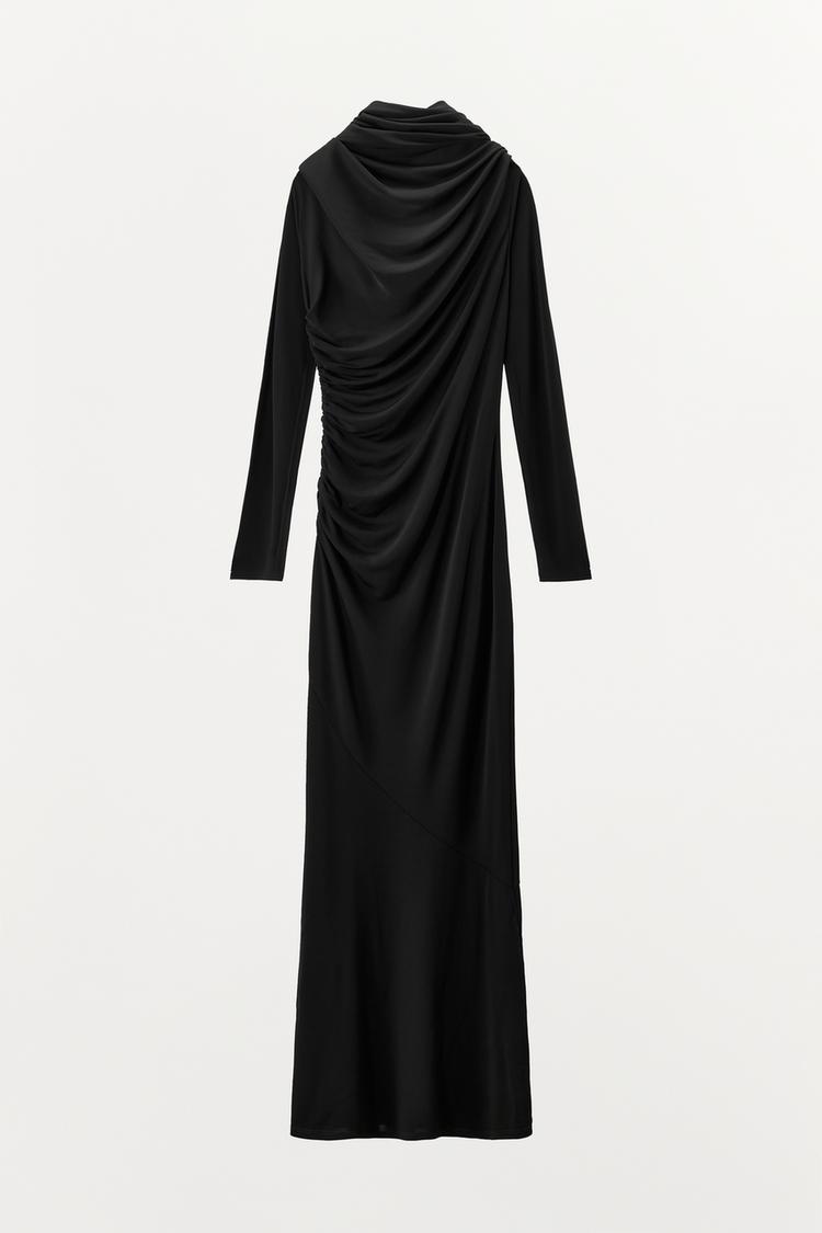 ZARA ПЛАТЬЕ ИЗ ВИСКОЗЫ С МНОГОФУНКЦИОНАЛЬНЫМ ВОРОТНИКОМ, ЧЕРНЫЙ