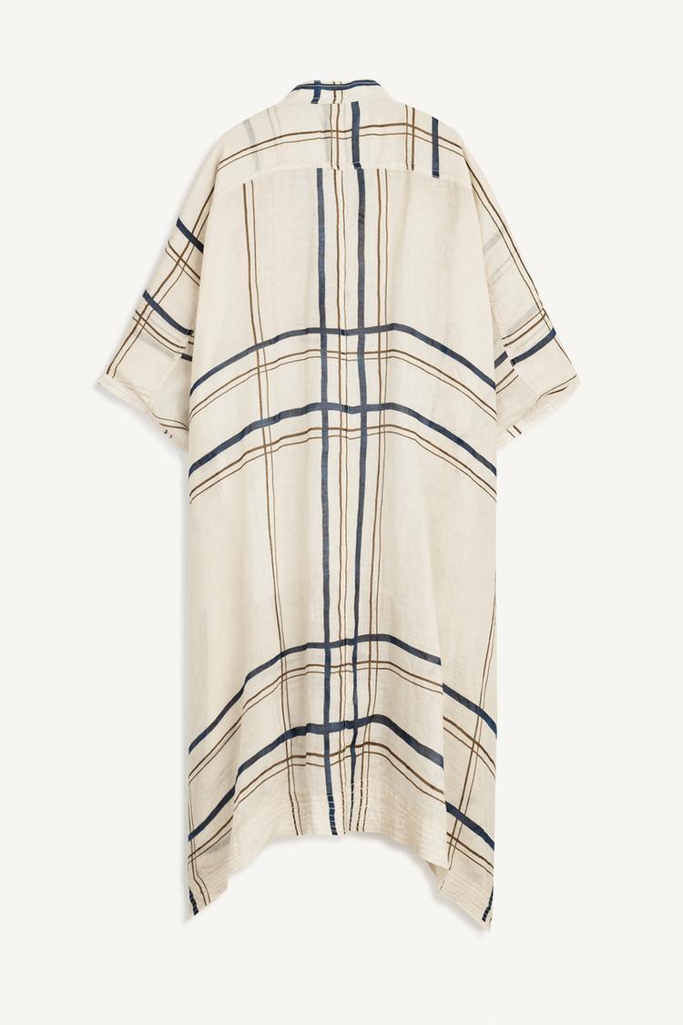 ZARA ПЛАТЬЕ-КАФТАН ИЗ ТКАНИ РАМИ, РАЗНОЦВЕТНЫЙ
