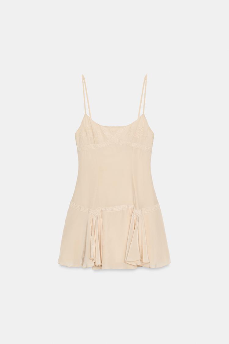 ZARA ПЛАТЬЕ-КОМБИНАЦИЯ С ВЫШИВКОЙ, ПЕРСИКОВЫЙ