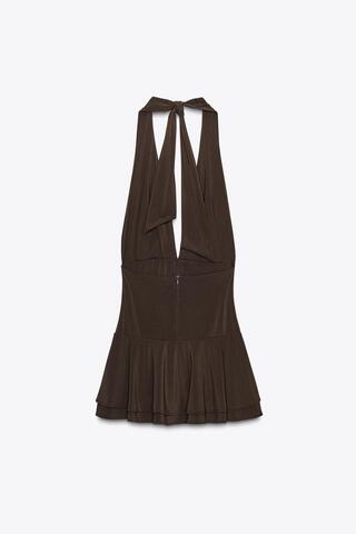 ZARA ПЛАТЬЕ-КОМБИНЕЗОН ХАЛТЕР, ТЕМНО-КОРИЧНЕВЫЙ