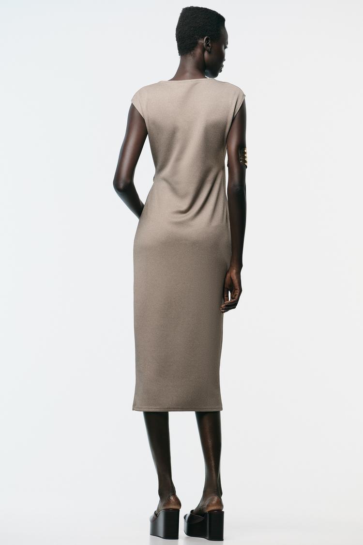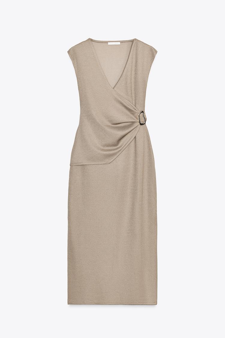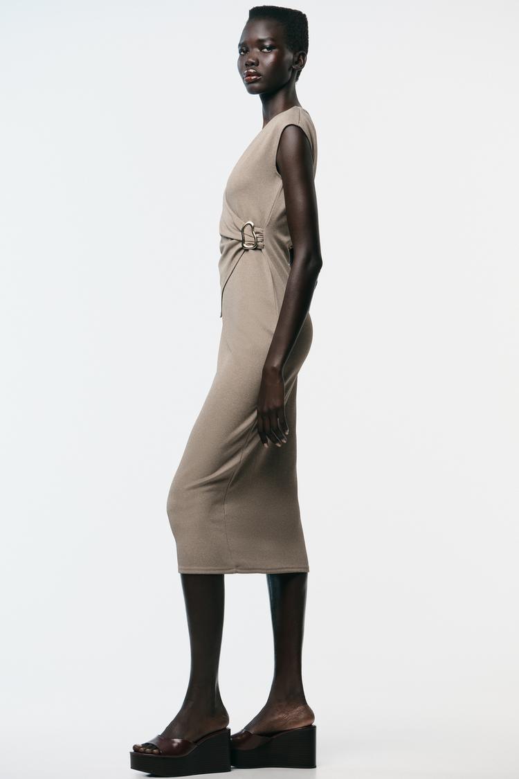 ZARA ПЛАТЬЕ МИДИ БЕЗ РУКАВОВ, БЕЖЕВЫЙ