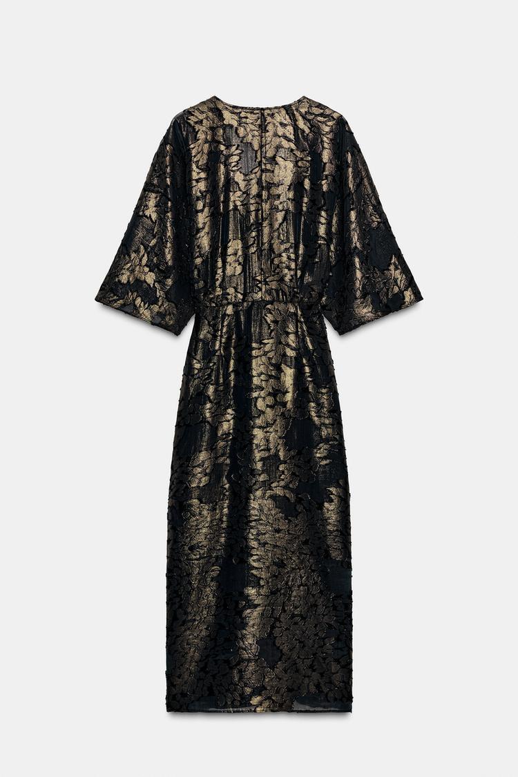 ZARA ПЛАТЬЕ МИДИ ИЗ БЛЕСТЯЩЕЙ ТКАНИ СО СБОРКАМИ, ЧЕРНЫЙ