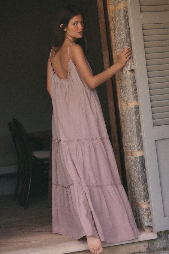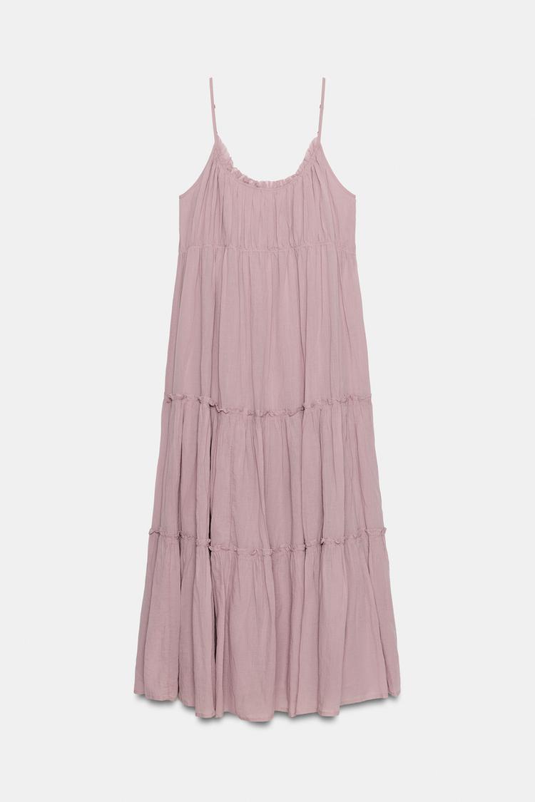 ZARA ПЛАТЬЕ МИДИ ИЗ ГАЗА С ВОЛАНАМИ, СИРЕНЕВЫЙ