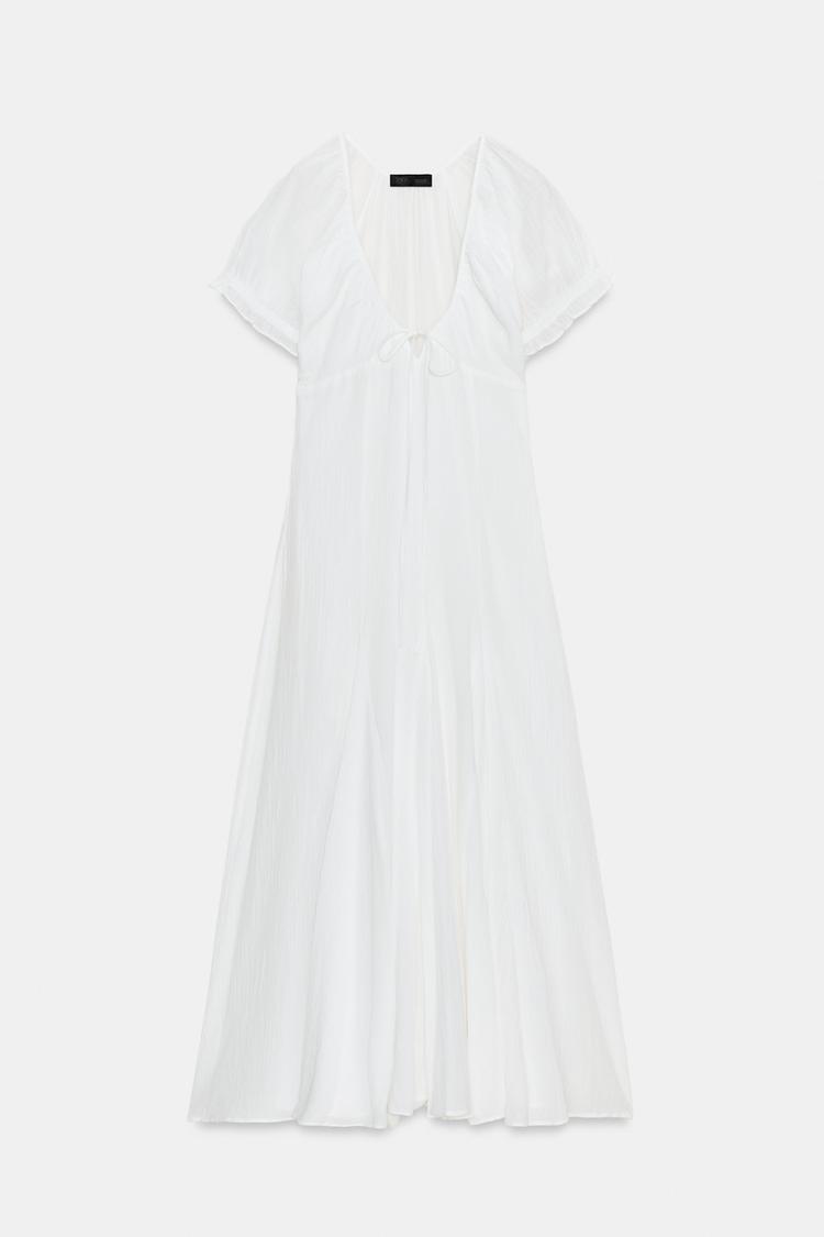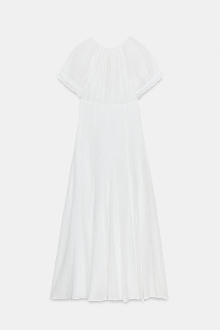 ZARA ПЛАТЬЕ МИДИ ИЗ ГАЗА С ЮБКОЙ ГОДЕ, БЕЛЫЙ