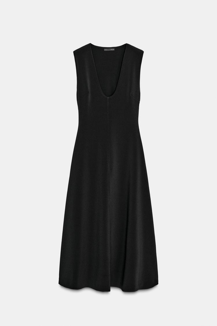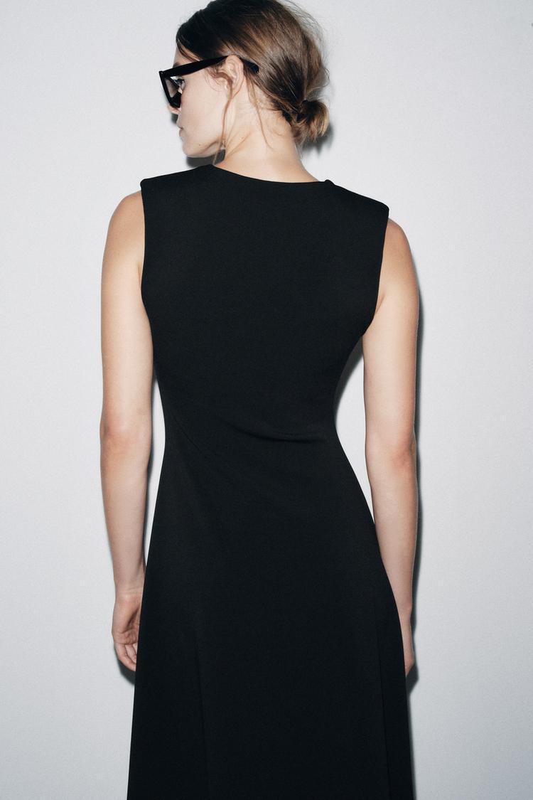 ZARA ПЛАТЬЕ МИДИ ИЗ КРЕПА, ЧЕРНЫЙ