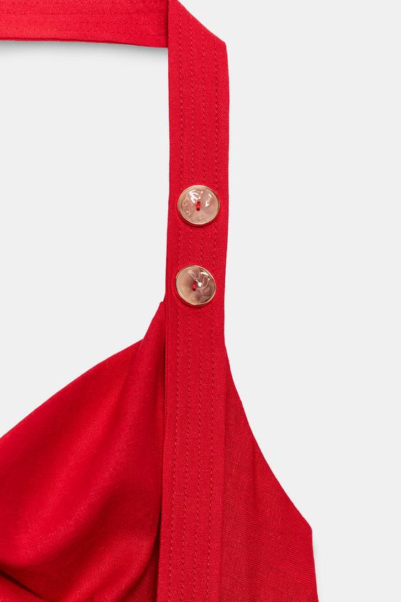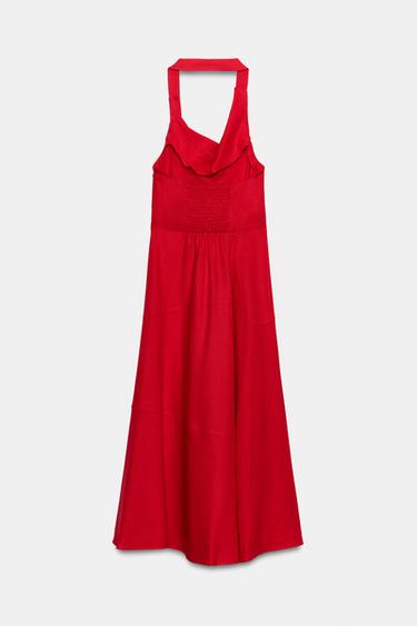 ZARA ПЛАТЬЕ МИДИ ИЗ ЛЬНА С ГОРЛОВИНОЙ ХАЛТЕР, КРАСНЫЙ
