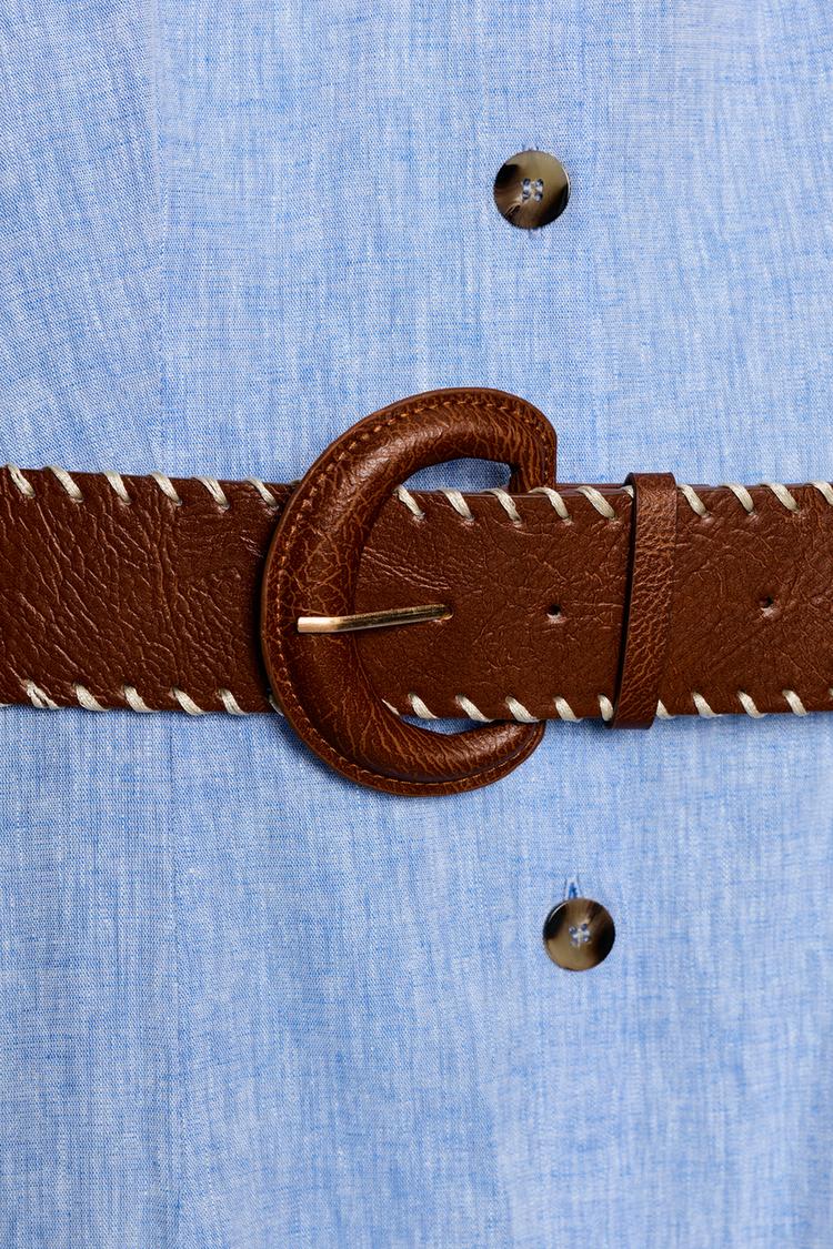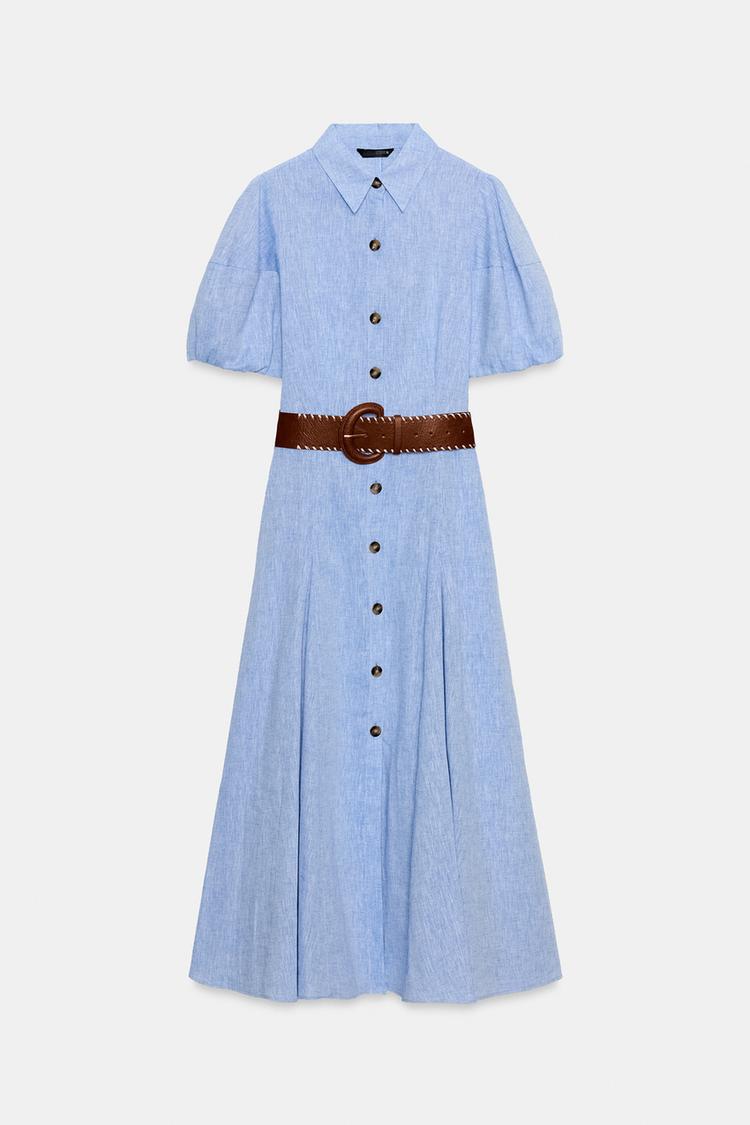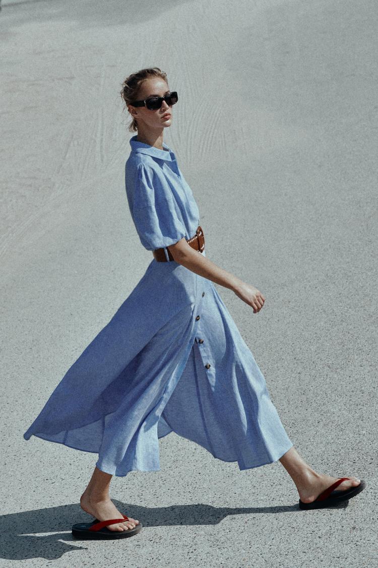 ZARA ПЛАТЬЕ МИДИ ИЗ ЛЬНА С ПОЯСОМ, СИНИЙ