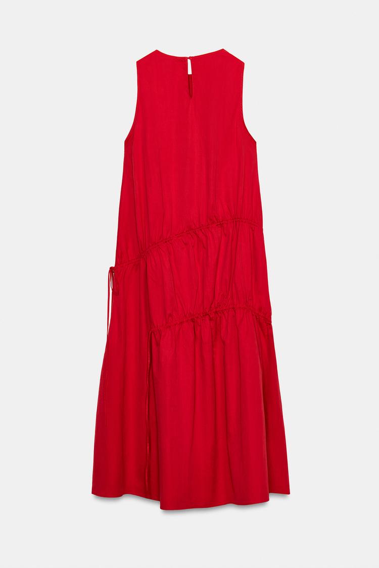 ZARA ПЛАТЬЕ МИДИ ИЗ НЕЙЛОНА С ЗАВЯЗКАМИ, КРАСНЫЙ