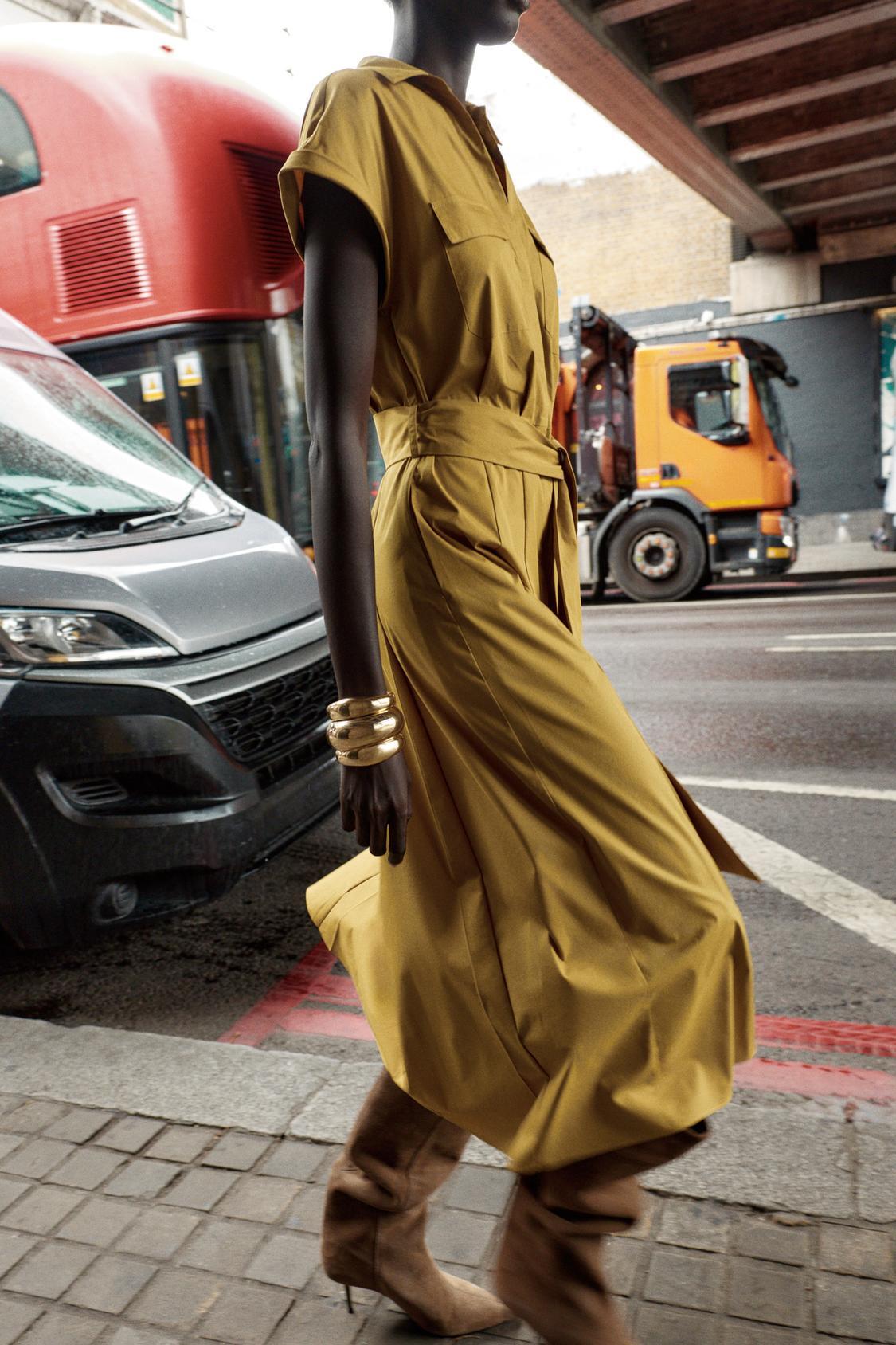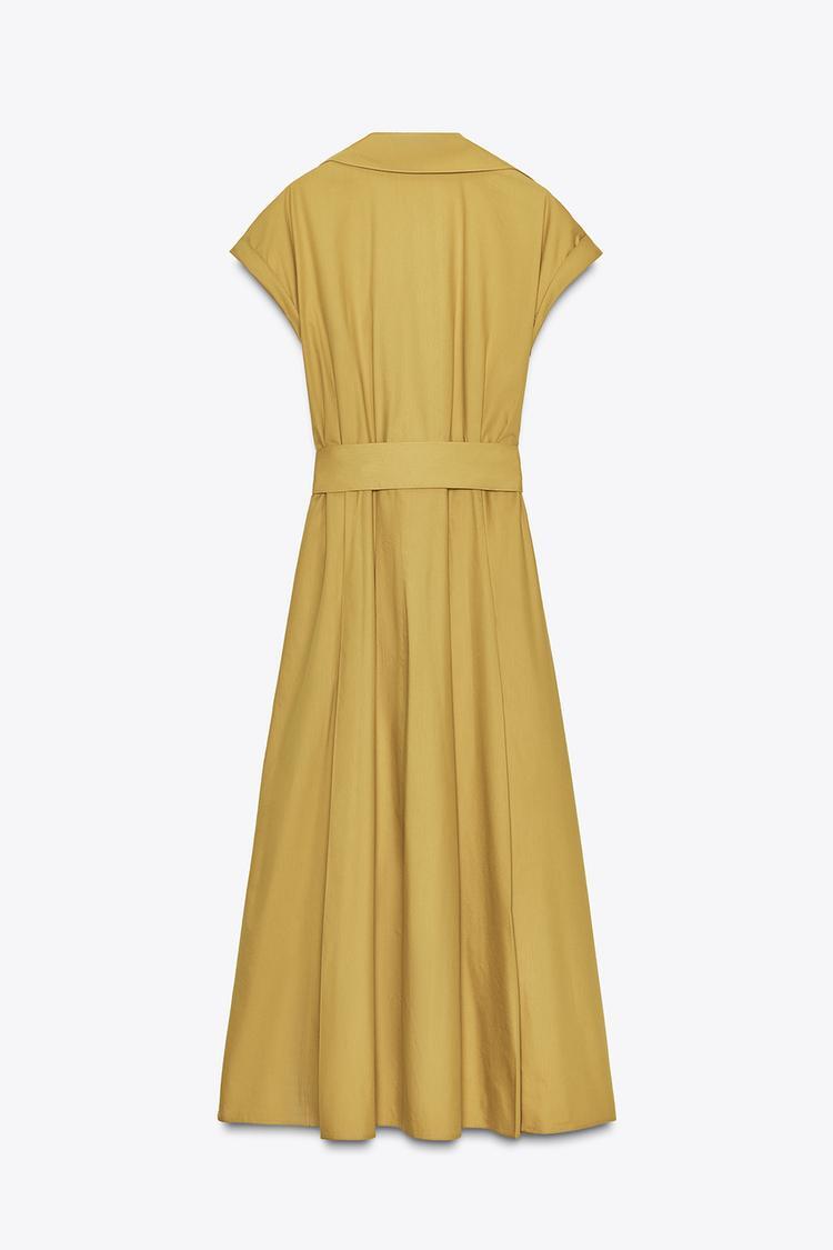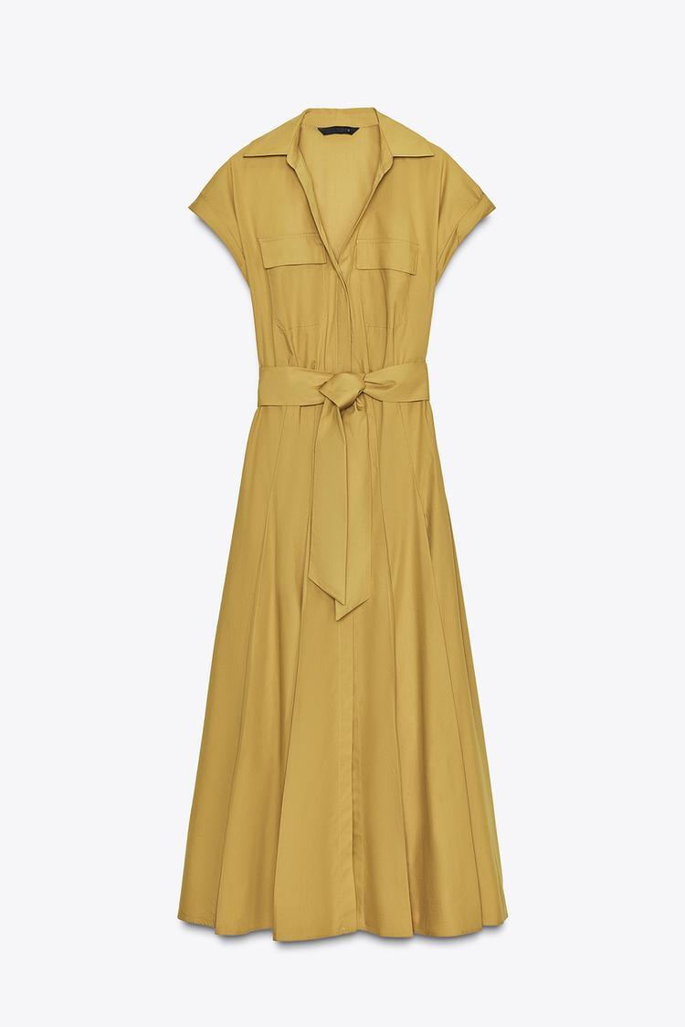 ZARA ПЛАТЬЕ МИДИ ИЗ ПОПЛИНА, ГОРЧИЧНЫЙ