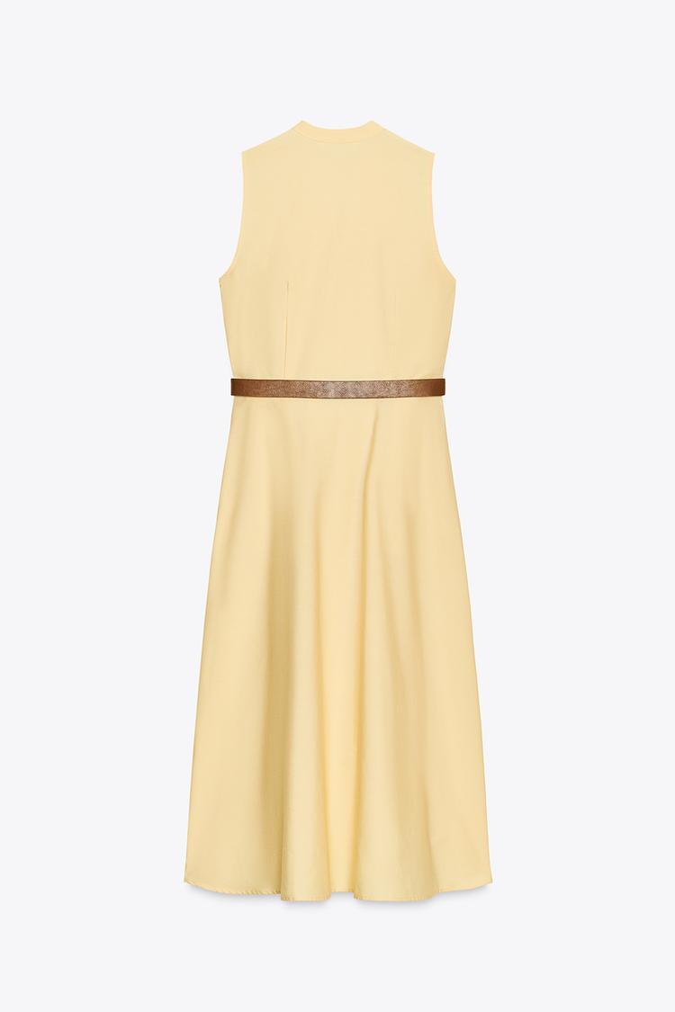 ZARA ПЛАТЬЕ-МИДИ ИЗ ПОПЛИНА С РЕМНЕМ, ЦВЕТ СЛИВОЧНОГО МАСЛА