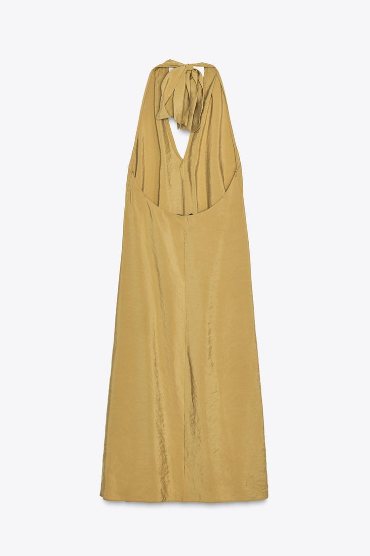 ZARA ПЛАТЬЕ МИДИ ИЗ СТРУЯЩЕЙСЯ ТКАНИ С ГОРЛОВИНОЙ ХАЛТЕР, ОЛИВКОВЫЙ