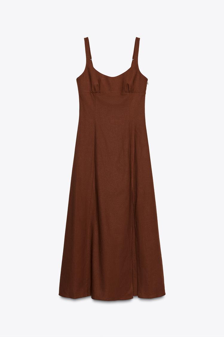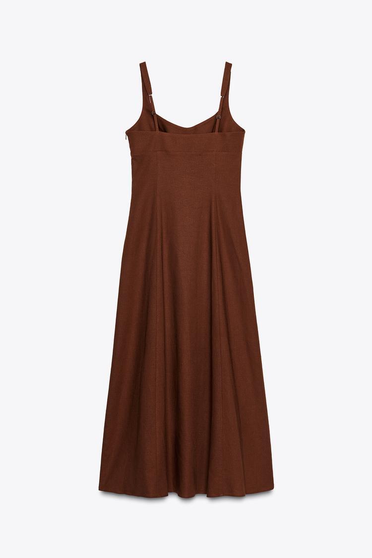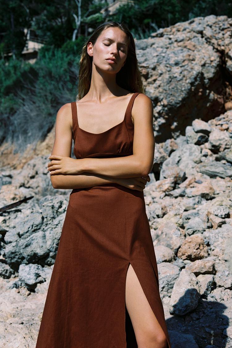 ZARA ПЛАТЬЕ-МИДИ ИЗО ЛЬНА, ТЕРРАКОТОВЫЙ