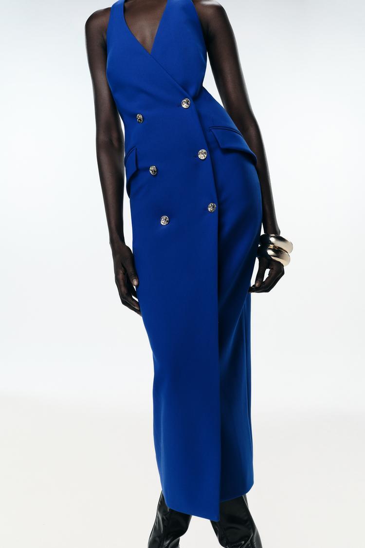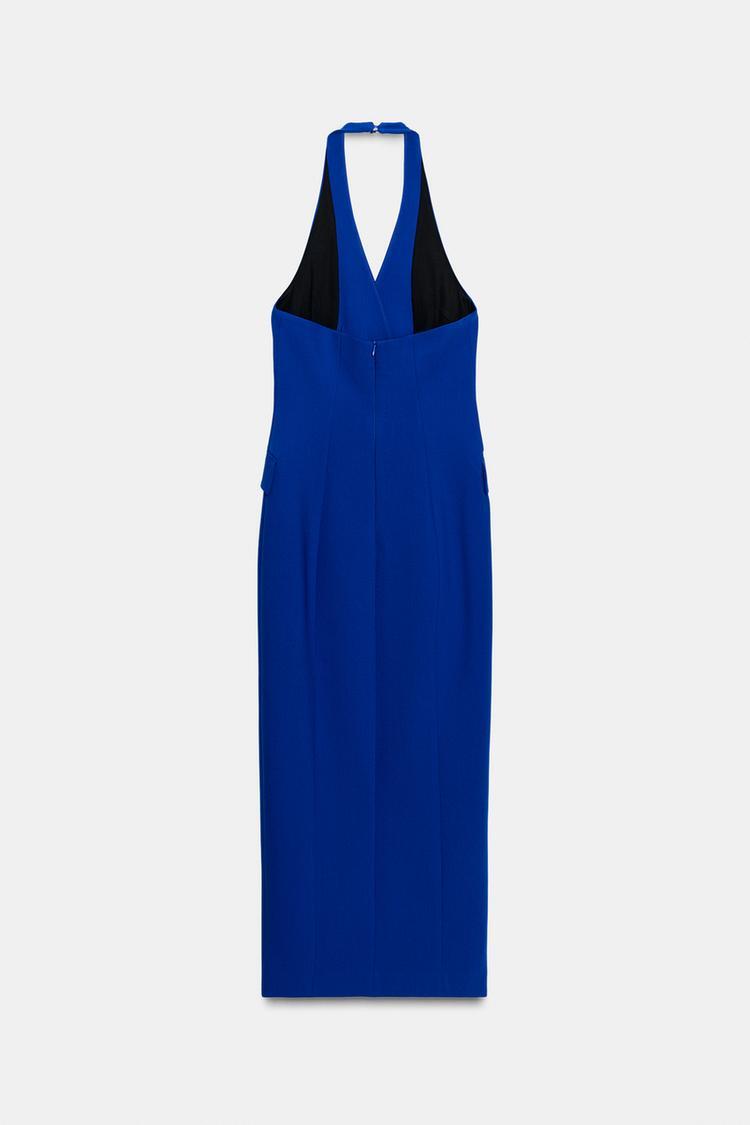 ZARA ПЛАТЬЕ МИДИ КРОЯ ТРУБА С ЗАПАХОМ, ЯРКО-СИНИЙ