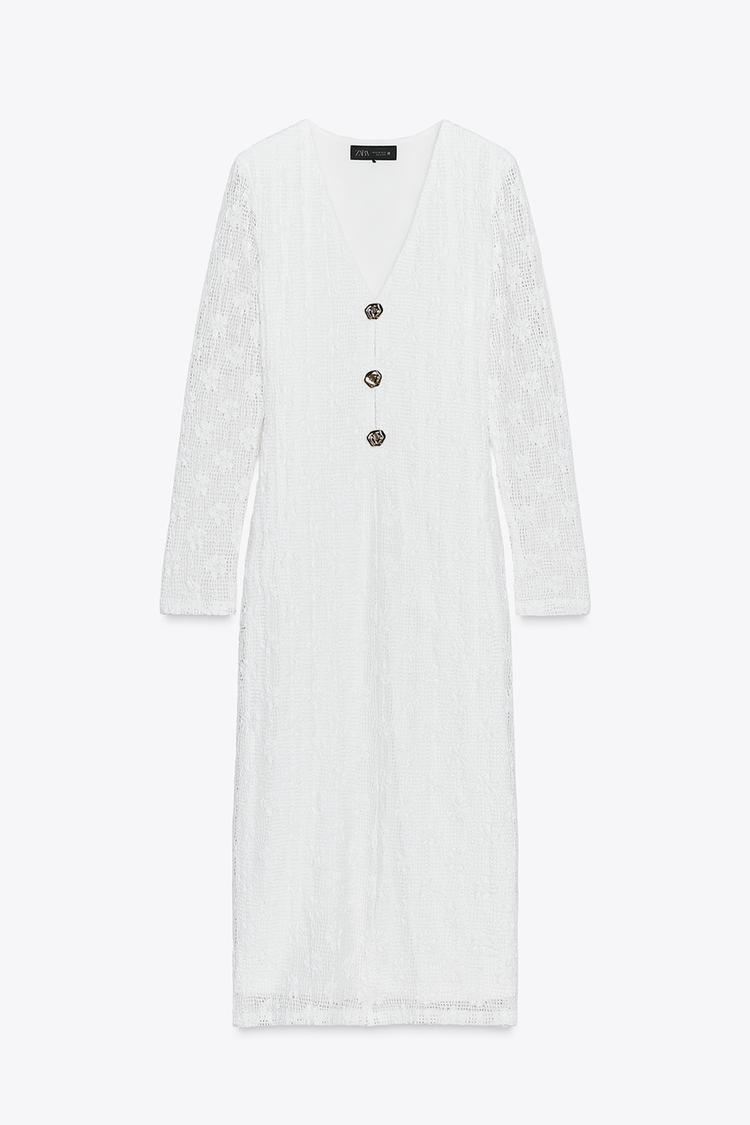 ZARA ПЛАТЬЕ МИДИ КРЮШЕ, БЕЛЫЙ
