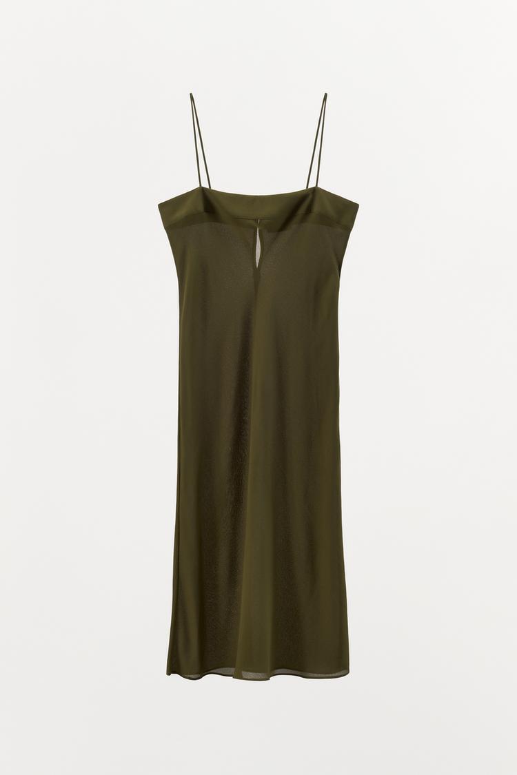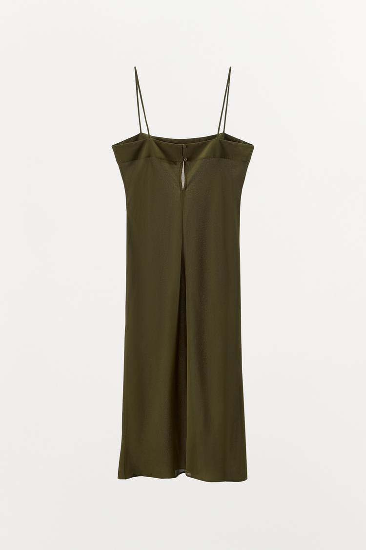 ZARA ПЛАТЬЕ МИДИ НА БРЕТЕЛЯХ ИЗ 100% ШЕЛКА, ЗЕЛЕНЫЙ