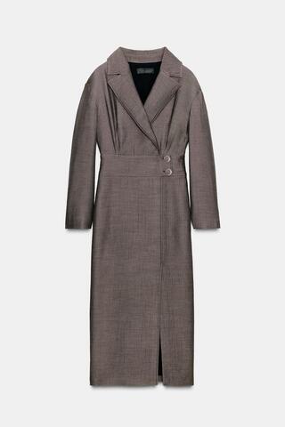 ZARA ПЛАТЬЕ МИДИ НА ЗАПÁХЕ, СЕРО-КОРИЧНЕВЫЙ
