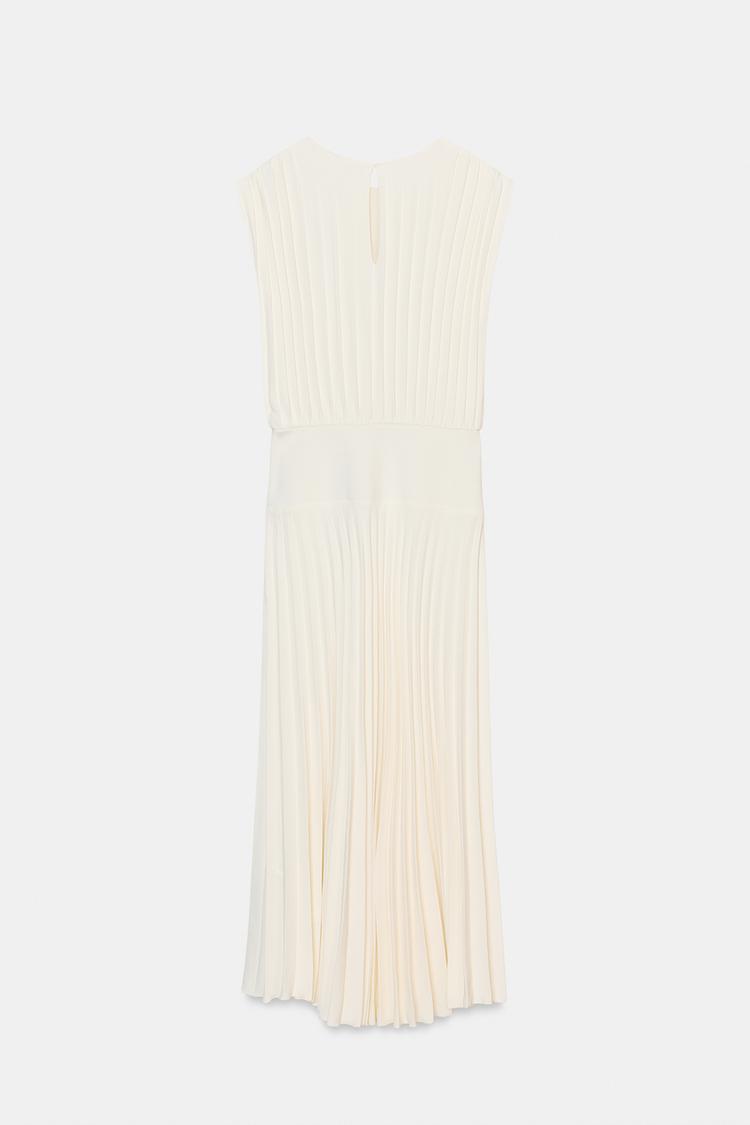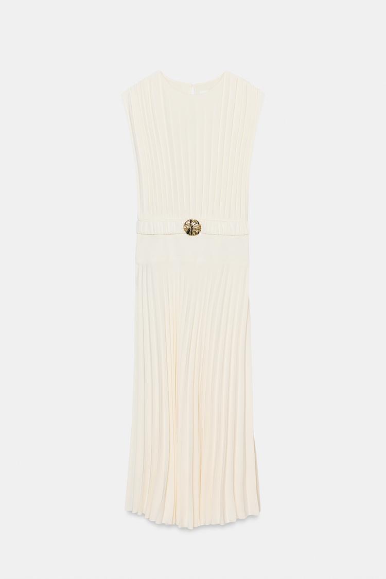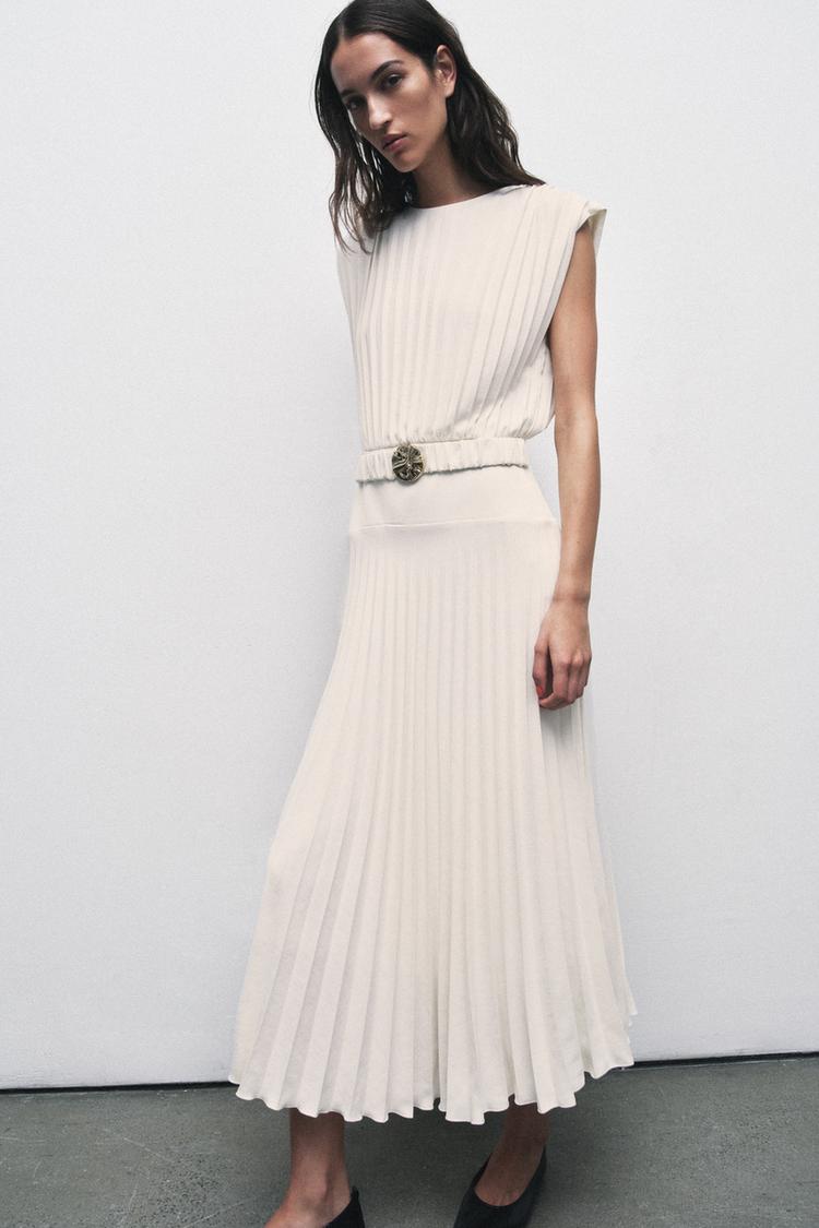 ZARA ПЛАТЬЕ МИДИ ПЛИССИРОВАННОЕ С ПОЯСОМ, БЕЛЫЙ