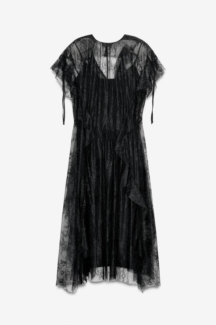 ZARA ПЛАТЬЕ МИДИ С КОРОТКИМИ РУКАВАМИ, ЧЕРНЫЙ