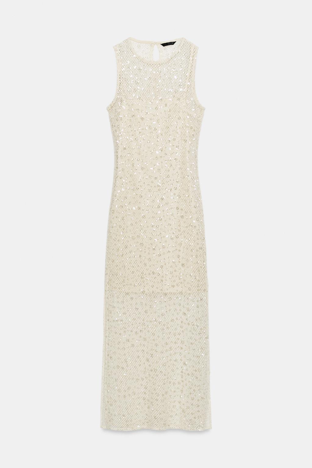 ZARA ПЛАТЬЕ МИДИ С ПАЙЕТКАМИ, ЭКРЮ