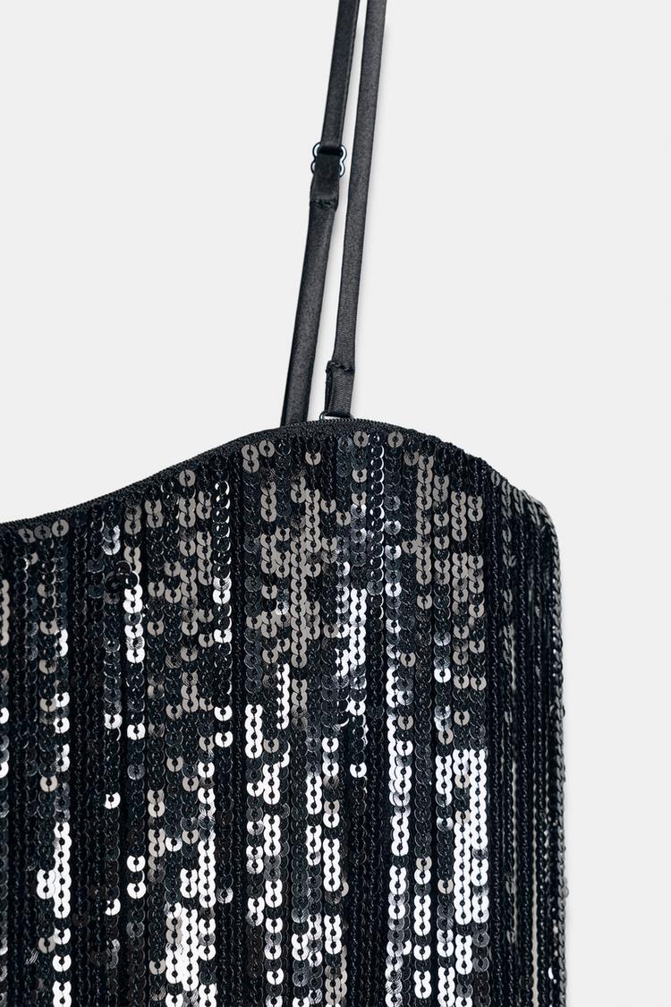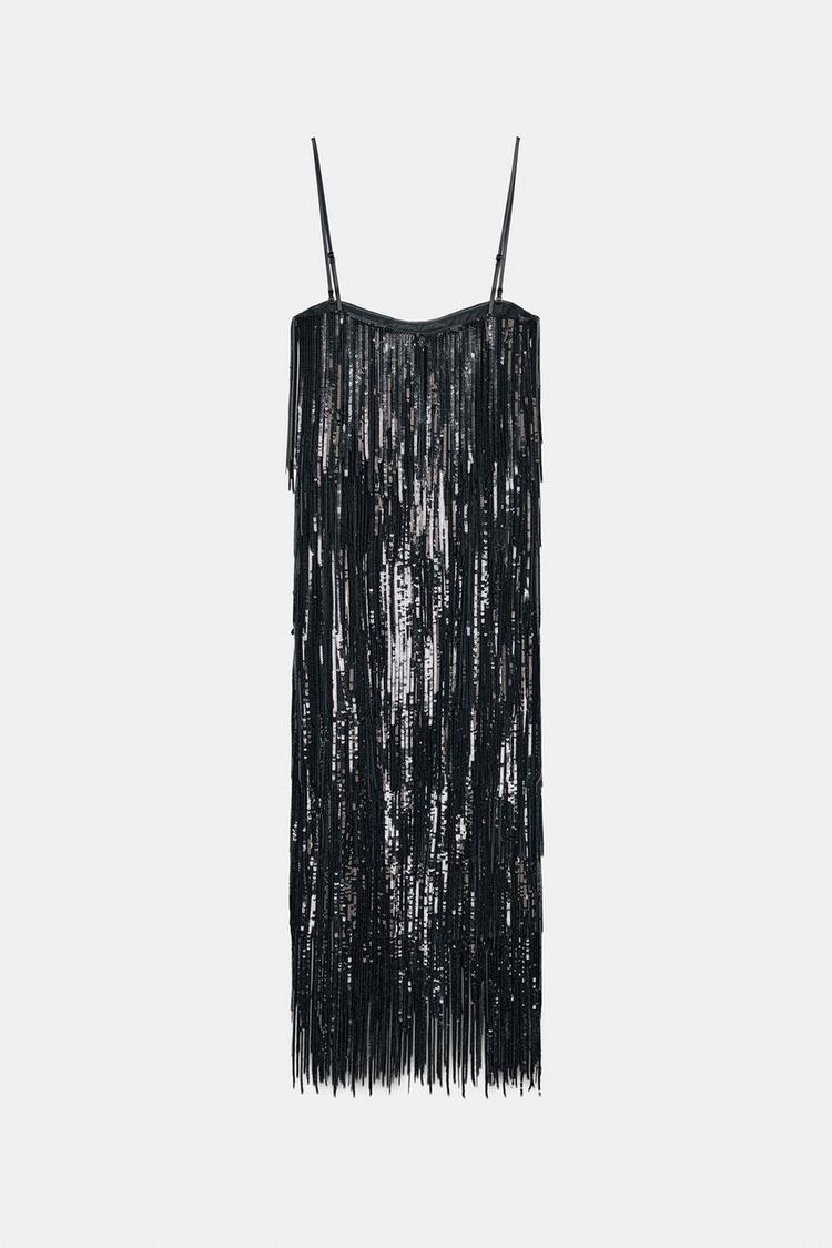 ZARA ПЛАТЬЕ МИДИ С ПАЙЕТКАМИ И БАХРОМОЙ — ZW COLLECTION LIMITED EDITION, ЧЕРНЫЙ